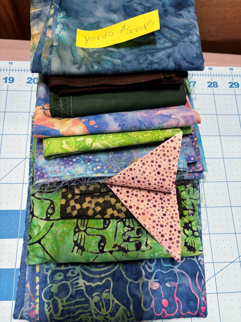 Lot # 23 - Large Quilting Fabric Lot – Yardage & Scraps – Prints, Batiks & Novelt