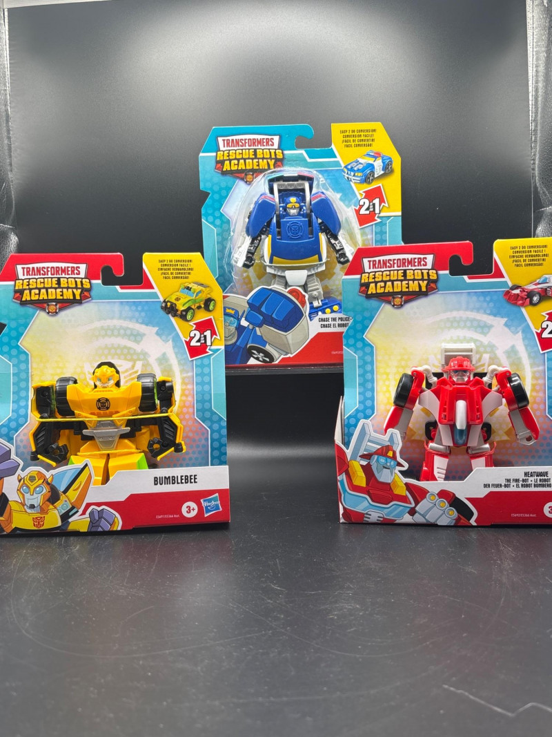 Three brand-new Transformers Rescue Bots Academy figures are still sealed in their original retail packaging. This lot includes the popular Autobot Bumblebee along with two additional Rescue Bots Academy characters, all featuring the easy 2-step robot-to-vehicle transformation that makes this series a favorite among young fans and collectors. Manufactured by Hasbro, these figures were released as part of the animated Transformers Rescue Bots Academy series. Because they remain new in package, they appeal to multiple buyer groups β collectors, gift buyers, and resellers β which often drives stronger bidding during auctions. Lots with multiple sealed figures are especially attractive because buyers can expand a collection or purchase gifts in a single win. π¦ Shipping Available Items will be carefully packed and protected to preserve the retail packaging during transit. Figures will be wrapped and boxed to prevent bending or crushing of the blister cards. Combined shipping may be available for bidders who win multiple lots in this auction. The Transformers Rescue Bots Academy toy line has become one of the most popular entry-level Transformers series, introducing younger fans to the iconic robot franchise. Characters like Bumblebee remain some of the most recognizable Autobots in the entire Transformers universe. Sealed figures from this series are popular with: β’ Transformers collectors When toy lots appeal to multiple buyer groups at once, bidding activity often increases as the auction closes. New in package (NIP / NIB). Please review photos carefully for exact condition.