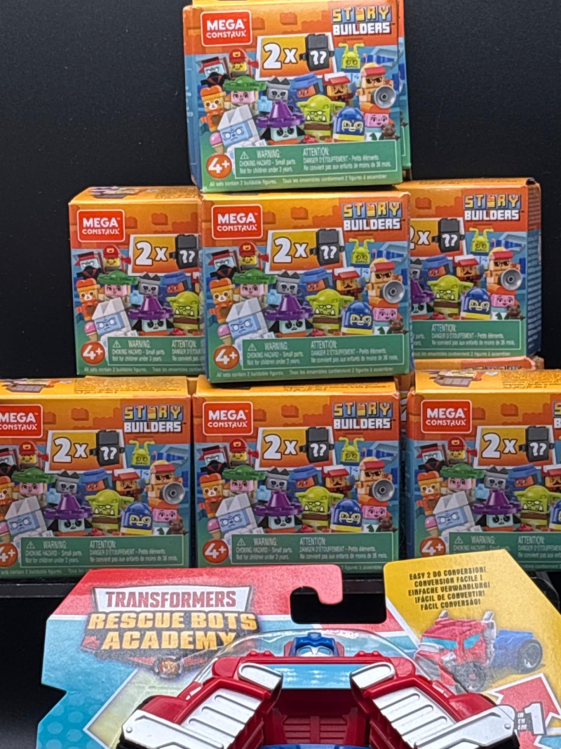 Fun mixed toy lot featuring Mega Construx Story Builders collectible sets, Despicable Me Minions building toys, and a Transformers Rescue Bots Academy Optimus Prime figure — all new in package. This colorful assortment includes seven Mega Construx Story Builders sets, two Despicable Me “Gru’s Car” Mega Construx sets, and one Transformers Optimus Prime Rescue Bots figure. The Story Builders series is a collectible Mega Construx line featuring small buildable characters with interchangeable parts. The packaging shows 7 different characters to collect, making these sets popular with kids who enjoy collecting the whole series. The lot also includes two Despicable Me 3 “Gru’s Car” Mega Construx sets, each featuring a buildable Minion vehicle and character from the popular animated film franchise. With multiple small boxed toys included, this lot works especially well for Easter baskets, Easter egg hunts, party favors, classroom prizes, or kids’ gift bundles. New in package. Items appear unopened in original retail packaging. Packaging may show minor shelf wear from storage. Please review photos carefully for exact condition. 📦 Shipping available. The Mega Construx Story Builders line focuses on small collectible buildable characters that can be mixed and matched for creative play. Each set includes pieces to build a character figure, encouraging imagination and customization. Mega Construx is known for producing construction toys based on well-known franchises such as Despicable Me, allowing fans to build characters and vehicles from the films. The included Gru’s Car sets feature a Minion character and buildable vehicle inspired by the movie series. The lot also includes a Transformers Rescue Bots Academy Optimus Prime figure, representing one of the most recognizable Autobots in the Transformers universe.