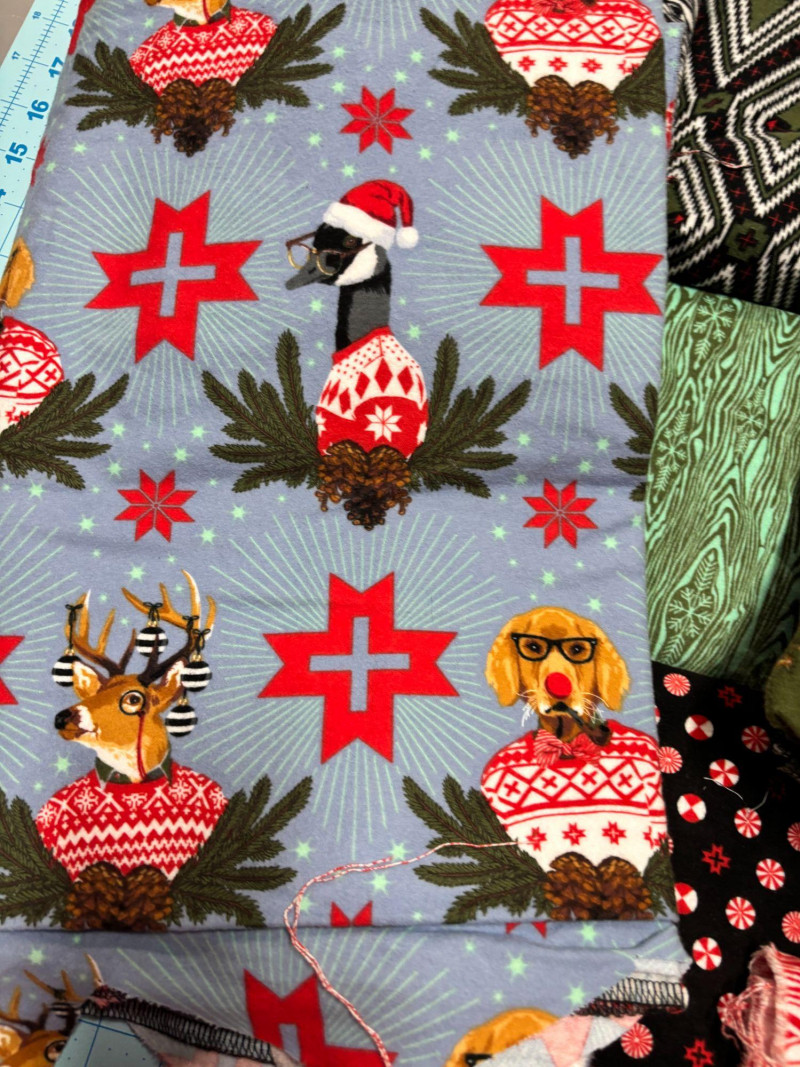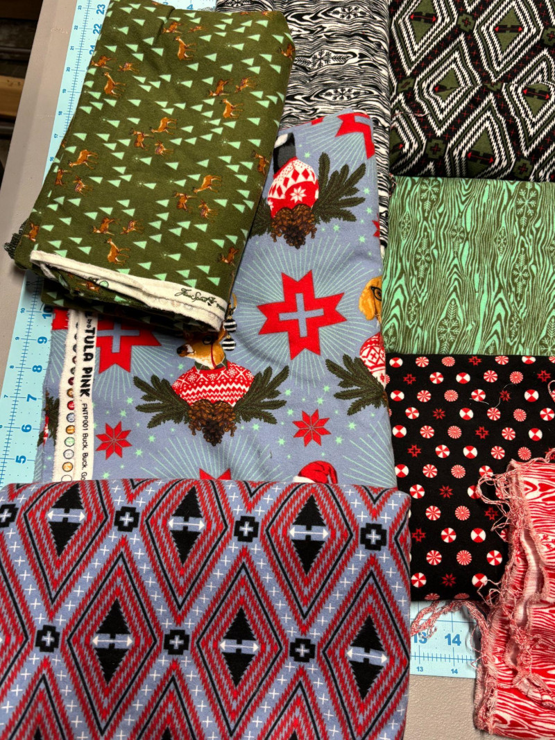 SHIPPABLE Fantastic large lot of Tula Pink Holiday Homies flannel fabric — perfect for winter quilts, holiday projects, and collectors of Tula Pink prints! This bundle features multiple coordinating prints from the popular Holiday Homies line, including festive holiday motifs, geometric patterns, and classic seasonal colorways in reds, greens, black, and cream. Soft, cozy flannel makes this ideal for quilts, throws, pajamas, and seasonal décor projects. Details: Tula Pink Holiday Homies collection Flannel fabric Multiple yard cuts (varied lengths) Coordinating prints and patterns Pre-owned stash fabric, neatly folded Condition: Perfect for: Holiday quilts Christmas gifts Winter sewing projects Tula Pink collectors Cozy flannel patchwork A beautiful, hard-to-find seasonal collection offered in one generous bundle!
