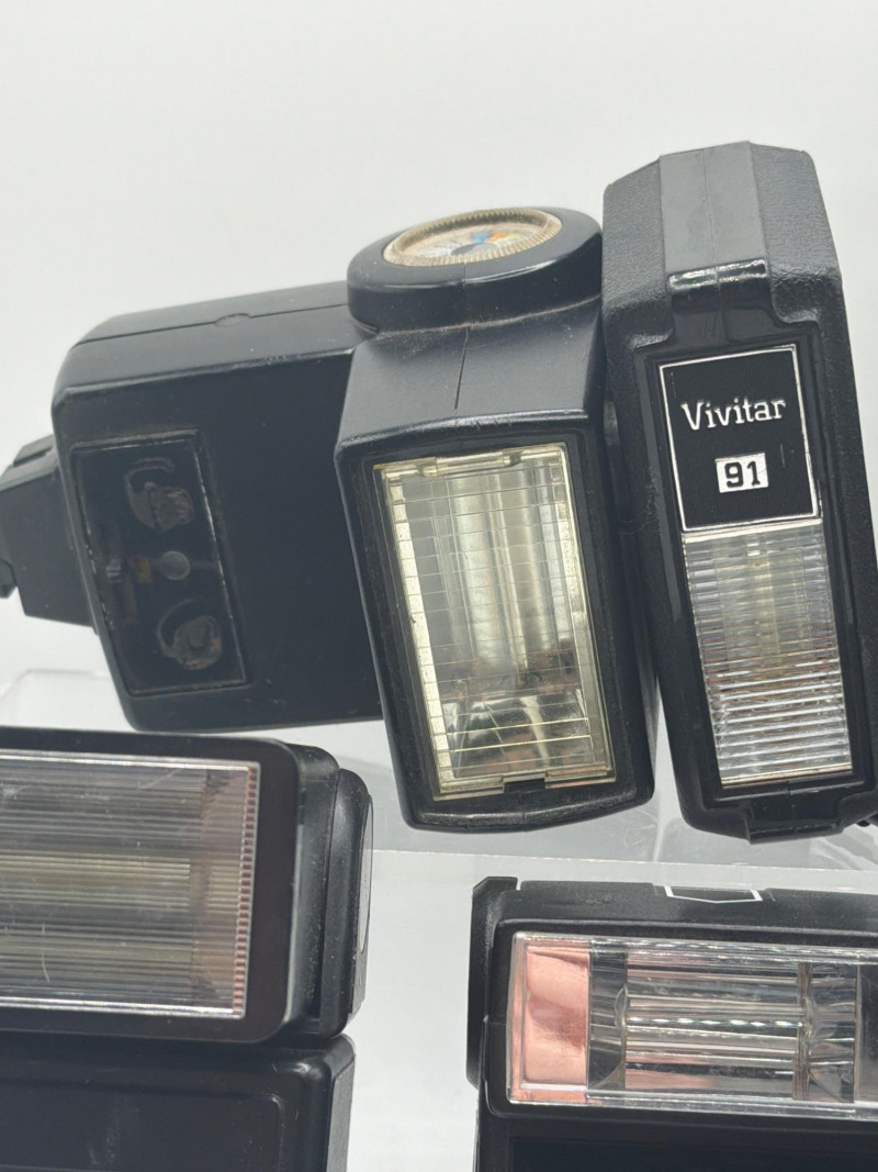 Lot # 118 - Vintage Camera Flash Lot Vivitar Sunpak Minolta Hot Shoe Units