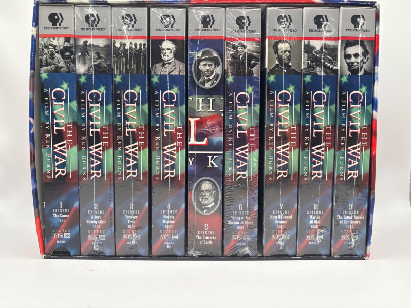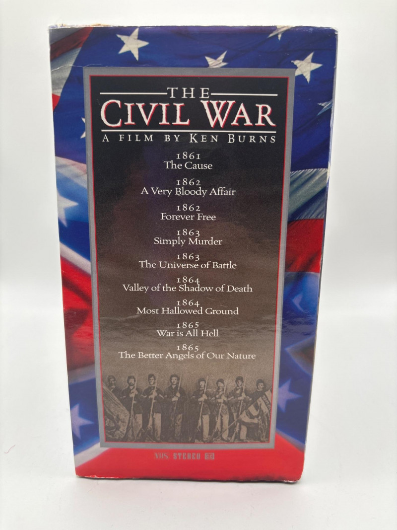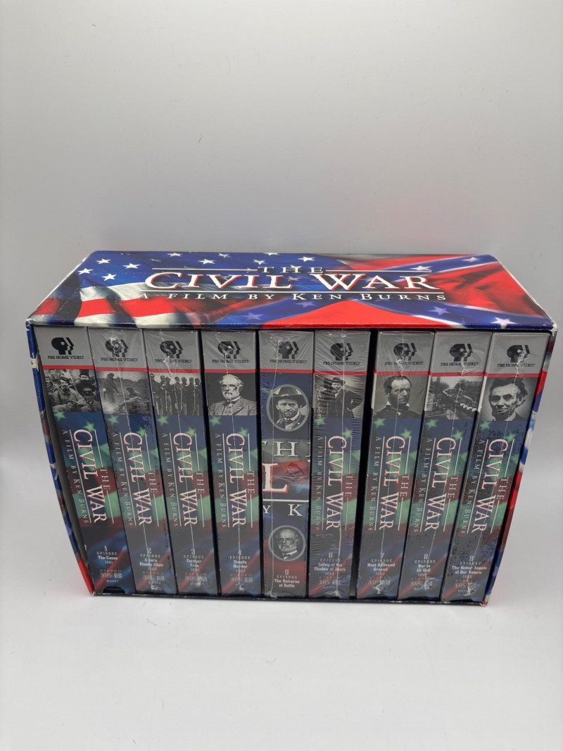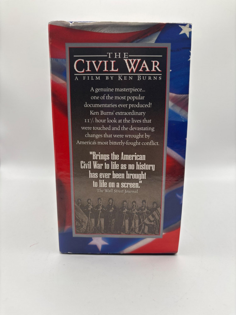 The acclaimed“The Civil War” documentary by Ken Burns was presented as a complete VHS box set. This landmark PBS documentary series is widely regarded as one of the most influential historical films ever produced. The series explores the American Civil War (1861–1865) through archival photographs, personal letters, narration, and historical analysis that bring this defining period in American history vividly to life. This complete set contains the full multi-episode documentary series on VHS tapes, housed in the original collector box. The series became famous for its storytelling approach and the now-famous “Ken Burns effect” used to animate historic photographs. This set is ideal for history collectors, educators, Civil War enthusiasts, or collectors of vintage VHS media. Please review photos carefully for the exact item included. Pre-owned. VHS tapes appear well kept in original box. Outer case may show light shelf or storage wear consistent with age. Please review photos for overall condition. Shipping available. Combined shipping offered for multiple auction wins whenever possible. Ken Burns’ The Civil War originally aired on PBS in 1990 and became one of the most watched and critically acclaimed documentaries ever broadcast on public television. The film features narration from notable actors reading historical letters and diaries, paired with period photographs and music. The series helped redefine documentary filmmaking and remains a cornerstone production for historical documentaries, often used in educational settings and Civil War studies.