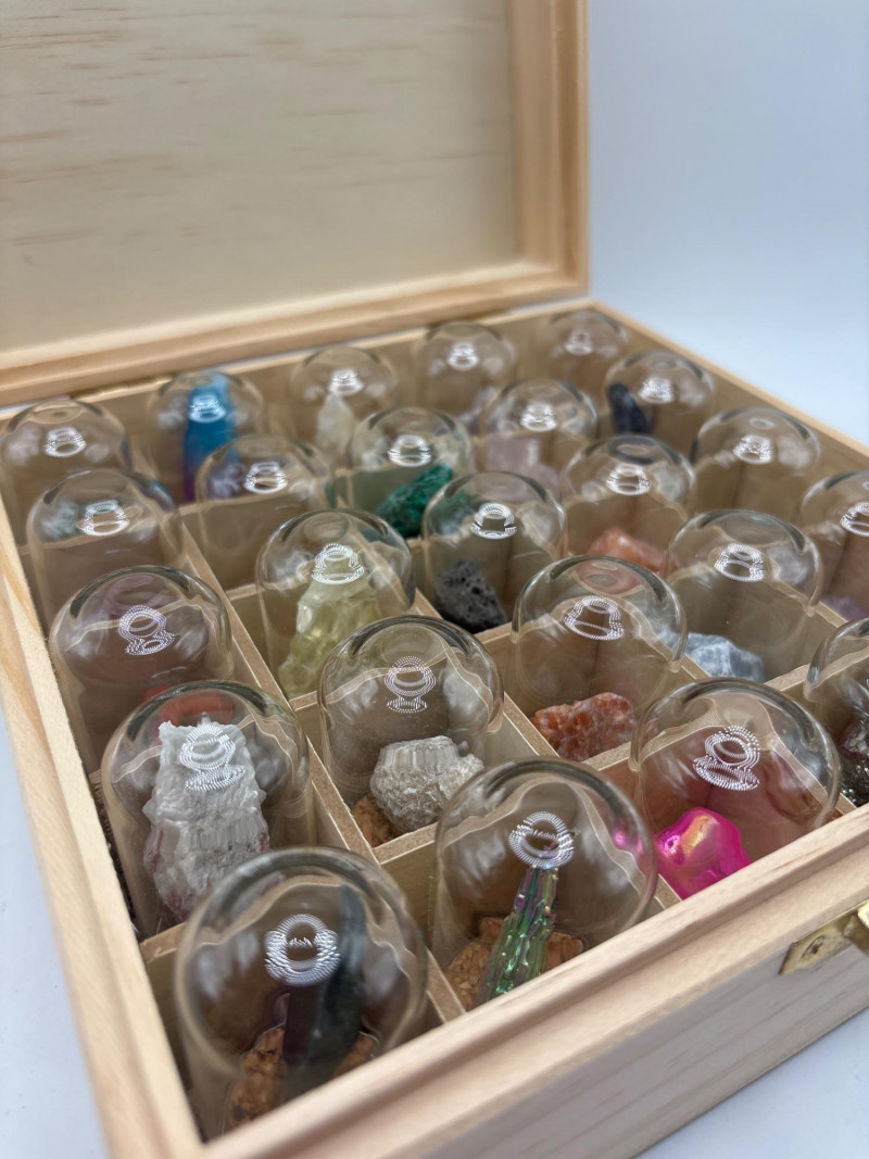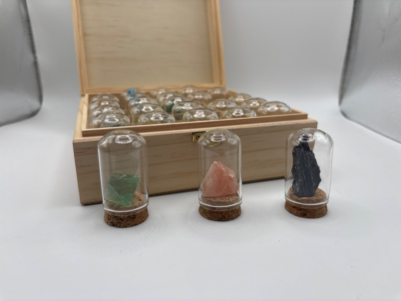 Lot # 127 - 25 Mineral Crystal Specimen Collection Box w/ Glass Domes Set