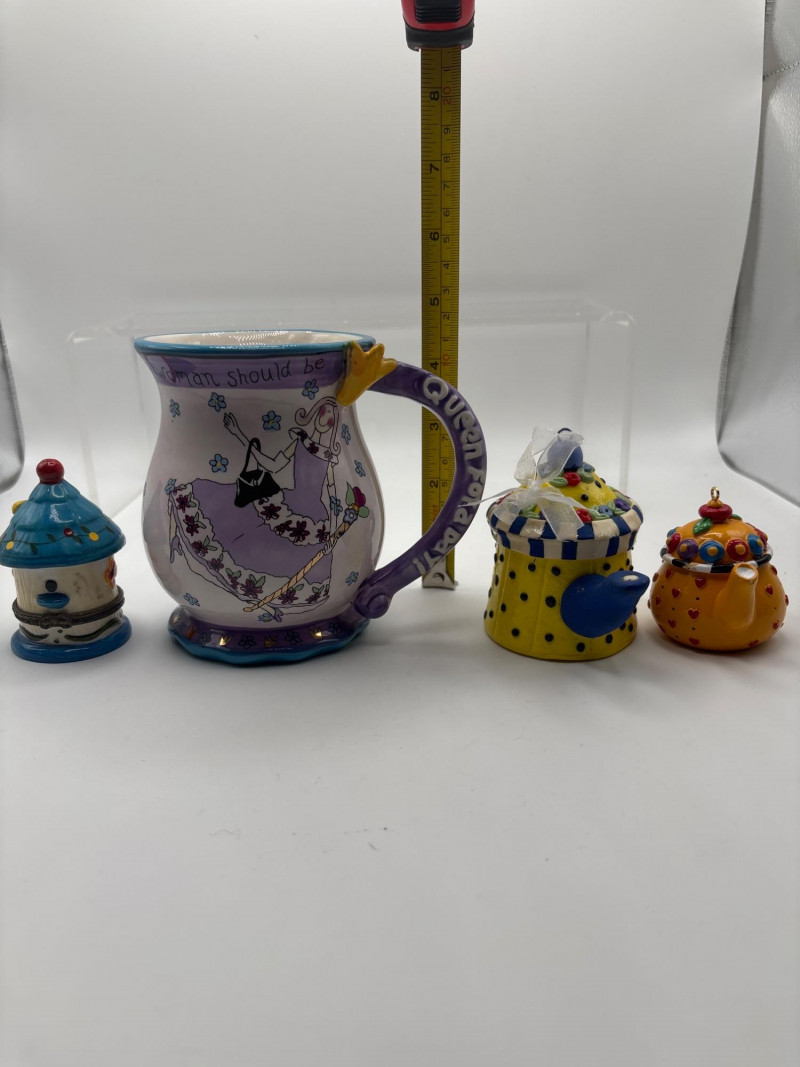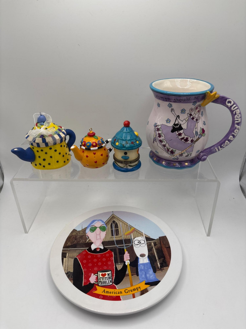 Lot # 130 - Mary Engelbreit Mini Teapots Trinket Box Mug & American Grunge Plate