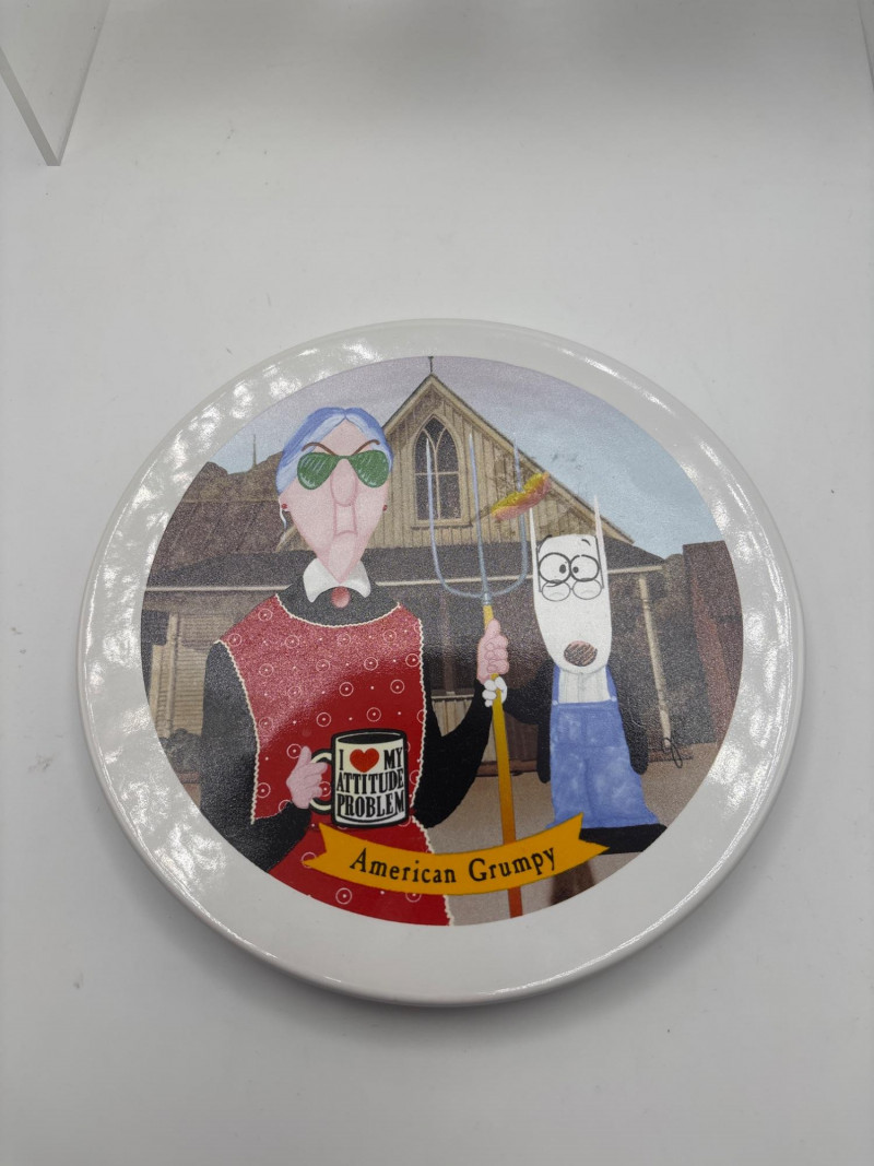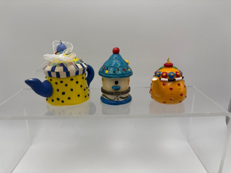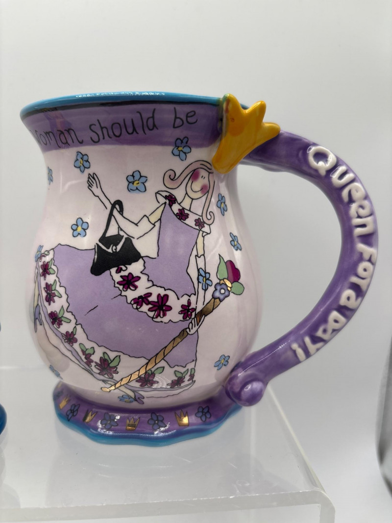 Whimsical Mary Engelbreit collectible lot featuring colorful ceramics in her signature folk-art style. Known for playful illustrations, bright colors, and charming characters, Engelbreit pieces are beloved by collectors and fans of cheerful vintage décor. This lot includes: 2 Mini Teapots (yellow polka dot and orange designs) 1 Mini Trinket Box with lid 1 Decorative Mug featuring Mary Engelbreit artwork and quote 1 “American Grunge” Decorative Plate-7.5 inch diameter. Each piece showcases Engelbreit’s recognizable bold colors, whimsical characters, and storybook-inspired folk art. These items are perfect for kitchen display, tea lovers, collectors, or fans of Mary Engelbreit artwork. A fun and colorful group of collectible pieces that display beautifully together. Please review photos carefully to see all items included in this lot. Pre-owned condition with light wear consistent with display and storage. No major damage noted. See photos for details. 📦 Shippable Mary Engelbreit rose to popularity in the 1980s and 1990s with her cheerful folk-art illustrations that appeared on greeting cards, books, home décor, and collectible ceramics. Her work is known for nostalgic themes, vibrant colors, and playful characters, making her pieces highly collectible.