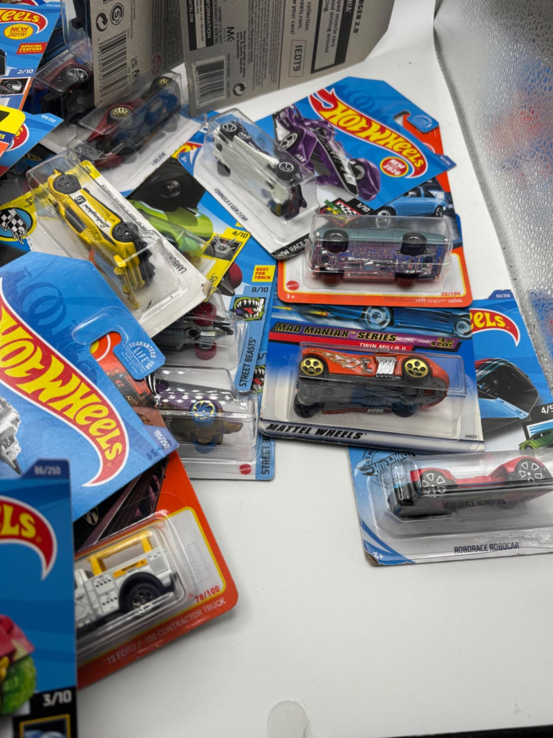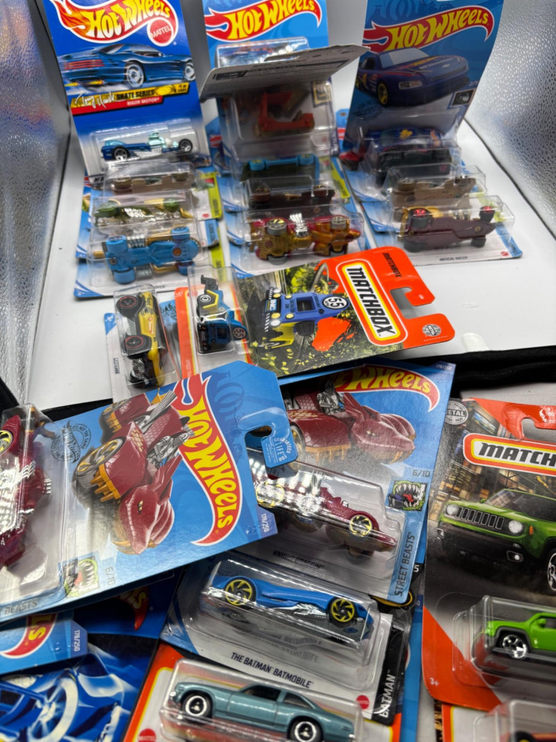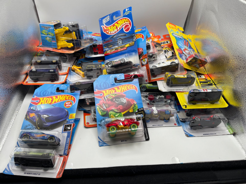 Fun Hot Wheels and Matchbox grab bag lots filled with a variety of die-cast vehicles still sealed on their original cards. Each grab bag includes at least 12 packaged cars, making these great for collectors, kids, or resellers looking for a mix of popular die-cast brands. These were organized as mystery grab bags, so each bag contains a random assortment of Hot Wheels and Matchbox vehicles. All cars in each set are packaged on their original cards, though packaging may show light wear from storage. There are 5 grab bag lots available, each containing 12 or more packaged cars. Great for: Die-cast car collectors Kids who love toy cars Birthday party favors Resellers looking for inventory Anyone who enjoys mystery lots Please review photos for examples of the types of cars included. Cars are new in original packaging. Card backs may show some light bending, edge wear, or storage wear. ๐ฆ Shippable Hot Wheels and Matchbox are two of the most recognizable die-cast toy car brands in the world. Both are produced by Mattel and have been collected for decades by hobbyists and enthusiasts. Mixed grab bags like these are popular because they offer a variety of vehicles in one lot.