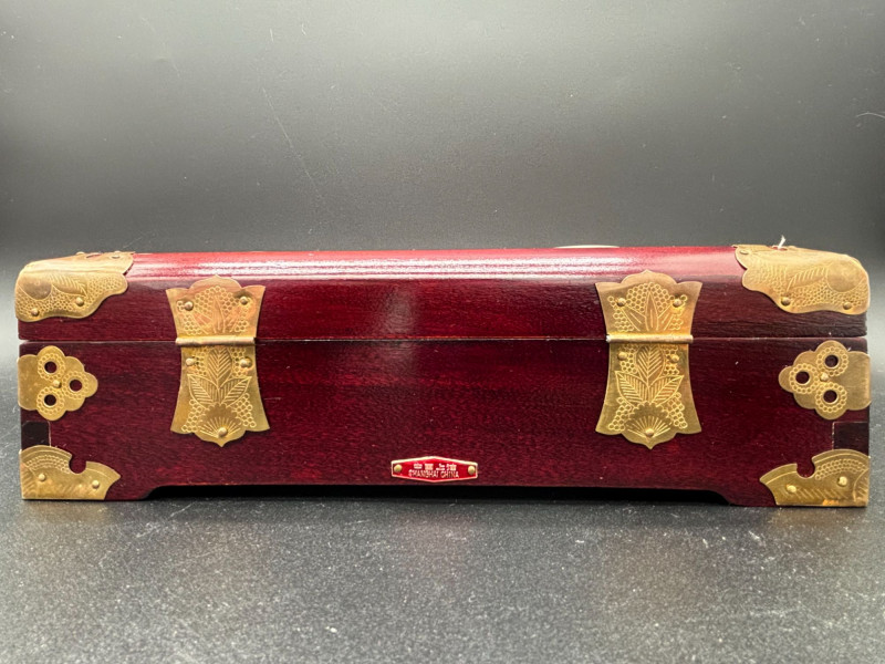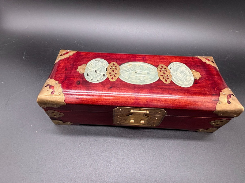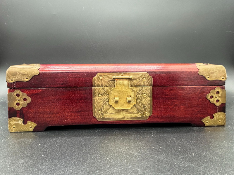 Lot # 26 - Vintage Chinese-Style Wooden Jewelry Box with Brass Hardware