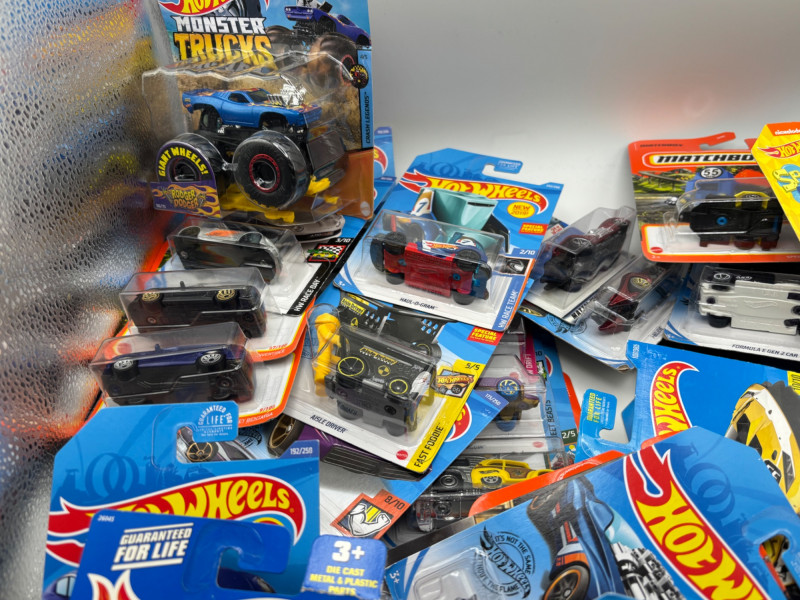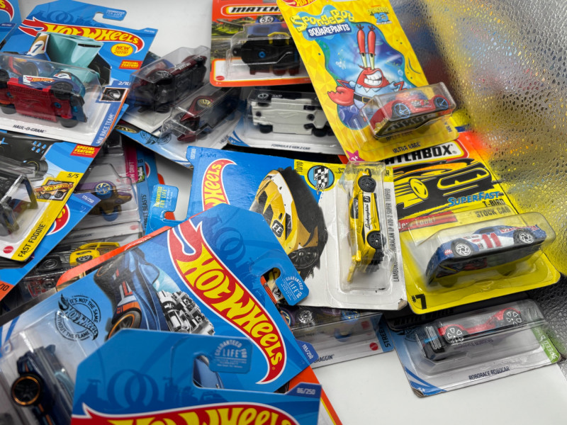 Fun Hot Wheels and Matchbox grab bag lots filled with a variety of die-cast vehicles still sealed on their original cards. Each grab bag includes at least 12 packaged cars, making these great for collectors, kids, or resellers looking for a mix of popular die-cast brands. These were organized as mystery grab bags, so each bag contains a random assortment of Hot Wheels and Matchbox vehicles. All cars in each set are packaged on their original cards, though packaging may show light wear from storage. There are 5 grab bag lots available, each containing 12 or more packaged cars. Great for: Die-cast car collectors Kids who love toy cars Birthday party favors Resellers looking for inventory Anyone who enjoys mystery lots Please review photos for examples of the types of cars included. Cars are new in original packaging. Card backs may show some light bending, edge wear, or storage wear. ๐ฆ Shippable Hot Wheels and Matchbox are two of the most recognizable die-cast toy car brands in the world. Both are produced by Mattel and have been collected for decades by hobbyists and enthusiasts. Mixed grab bags like these are popular because they offer a variety of vehicles in one lot.