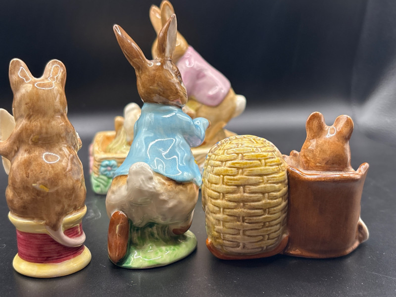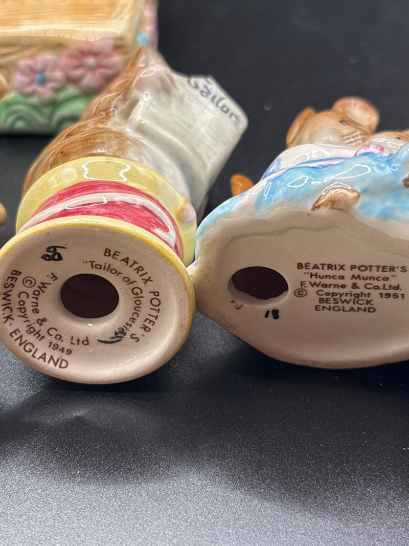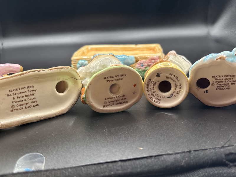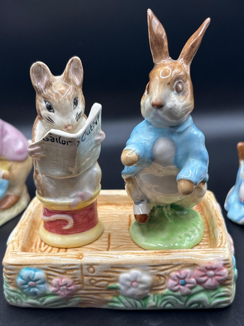 Lot # 144 - Beatrix Potter Figurine Lot Rabbits Mouse + Floral Display Stand