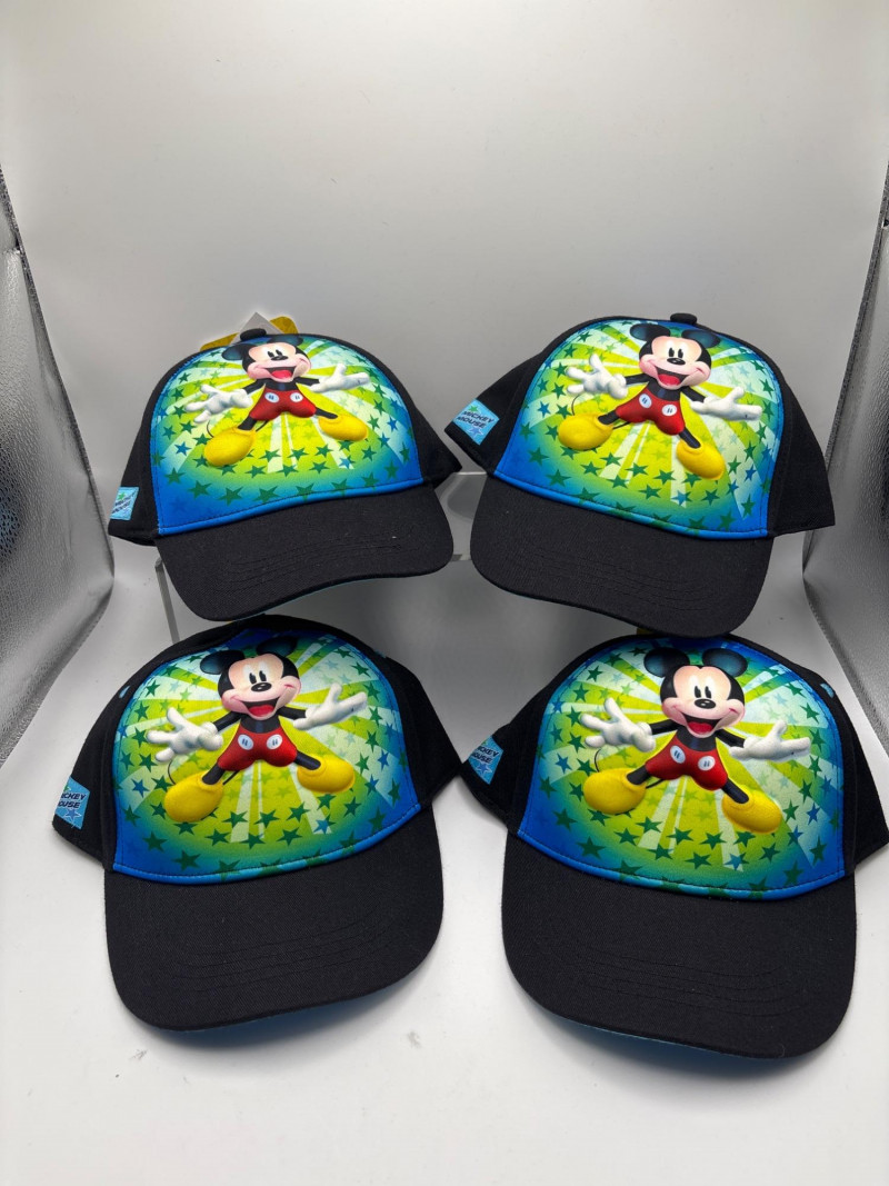 Fun Disney Mickey Mouse hat lot featuring colorful character graphics and adjustable baseball cap styling. These hats showcase the classic Mickey Mouse character with a vibrant starburst background design. The caps feature a black mesh back and adjustable snapback closure, making them comfortable and easy to fit for kids. Items included: 4 Mickey Mouse baseball caps Adjustable snapback style Bright Mickey Mouse front graphic These hats are great for Disney fans, kids’ everyday wear, theme park trips, or character collections. Please review photos for details and items included. Appear to be new with original tags attached. 📦 Shippable Mickey Mouse is one of the most recognizable animated characters in the world and the mascot of The Walt Disney Company. Mickey-themed apparel remains popular with both kids and Disney collectors.