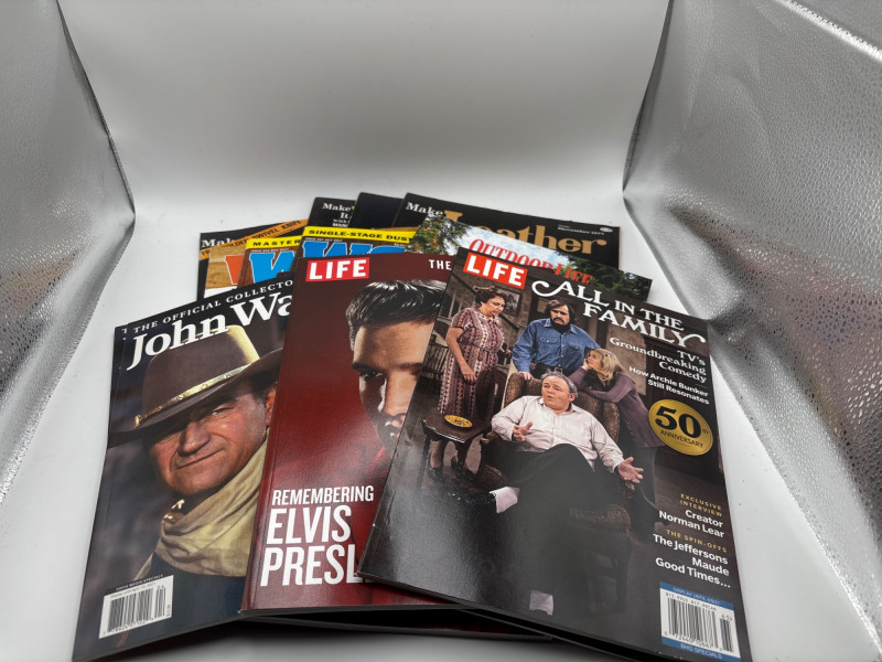 Great mixed lot of specialty and collector magazines covering woodworking, leather crafting, outdoor living, and classic entertainment icons. Lots like this are perfect for hobbyists looking for inspiration, collectors seeking interesting issues, or anyone who enjoys flipping through vintage and specialty publications. This lot includes magazines from several popular categories, including Wood Magazine woodworking issues, Make It With Leather craft magazines, Outdoor Life special edition “Live Off the Grid,” and entertainment magazines featuring icons such as John Wayne and Elvis Presley. These magazines contain project plans, craft tutorials, outdoor living ideas, historical features, and pop culture articles, making them enjoyable both for reading and collecting. Included themes and titles visible in the lot: Mixed lots like this often appeal to woodworkers, leather crafters, outdoors enthusiasts, and pop culture collectors. With Easter approaching, smaller items like magazines can also make fun additions to Easter baskets, egg hunt prizes, or rainy-day reading gifts. Please review photos carefully to see the exact magazines included in this auction lot. Pre-owned magazines in overall good readable condition. Some may show light handling wear, minor edge wear, or normal storage wear consistent with magazines. Please review photos for overall condition. Shipping available. Combined shipping offered for multiple auction wins whenever possible. Magazines focused on woodworking, leathercraft, and outdoor living often contain detailed guides, project plans, and techniques that hobbyists continue to reference years after publication. Collector issues featuring icons like John Wayne and Elvis Presley are also popular with fans of classic film, music, and American pop culture history. Mixed lots offer a chance to explore a variety of topics while adding interesting publications to a personal collection or workshop library.