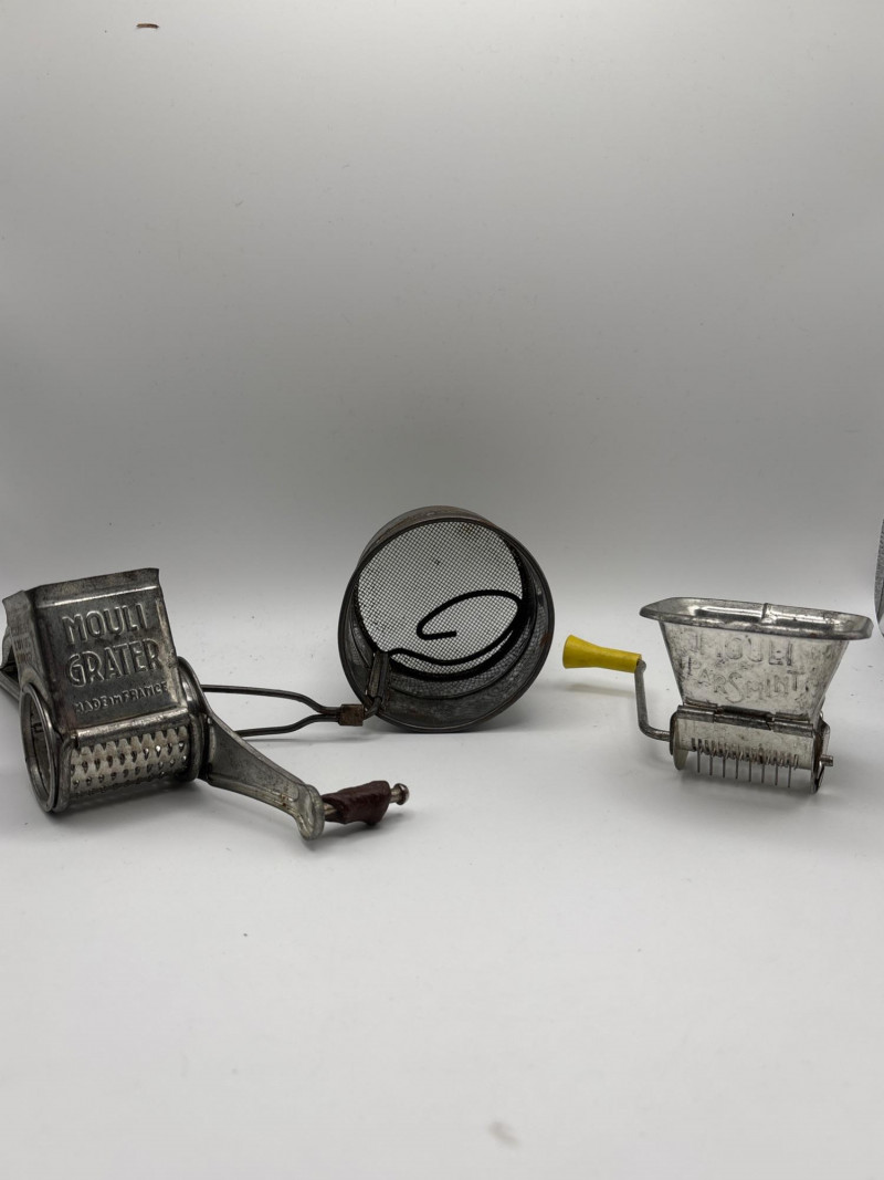 Lot # 160 - Vintage Mouli Rotary Grater & Grinder + Flour Sifter Kitchen Lot