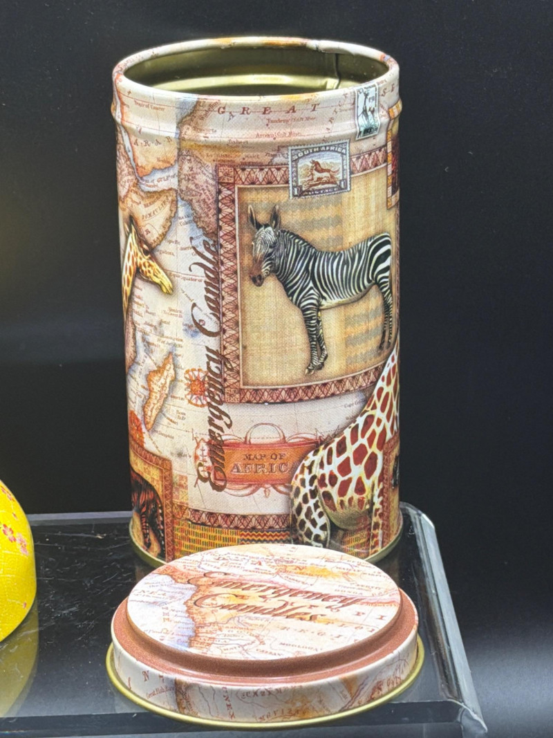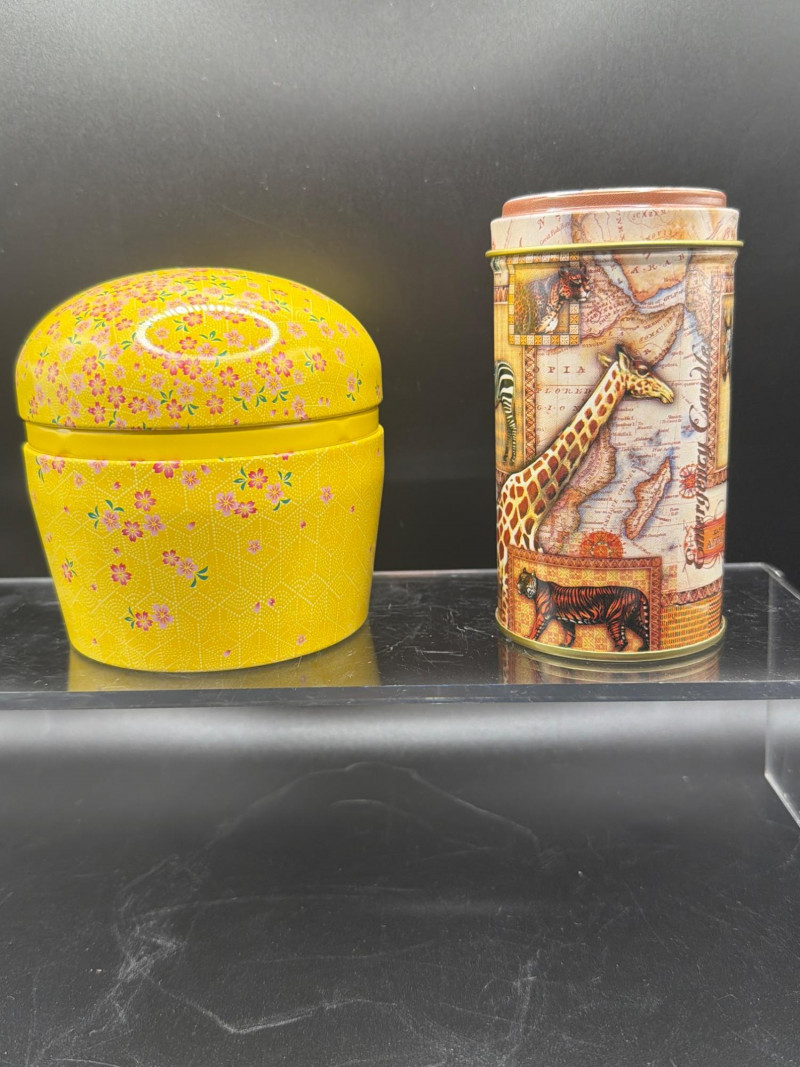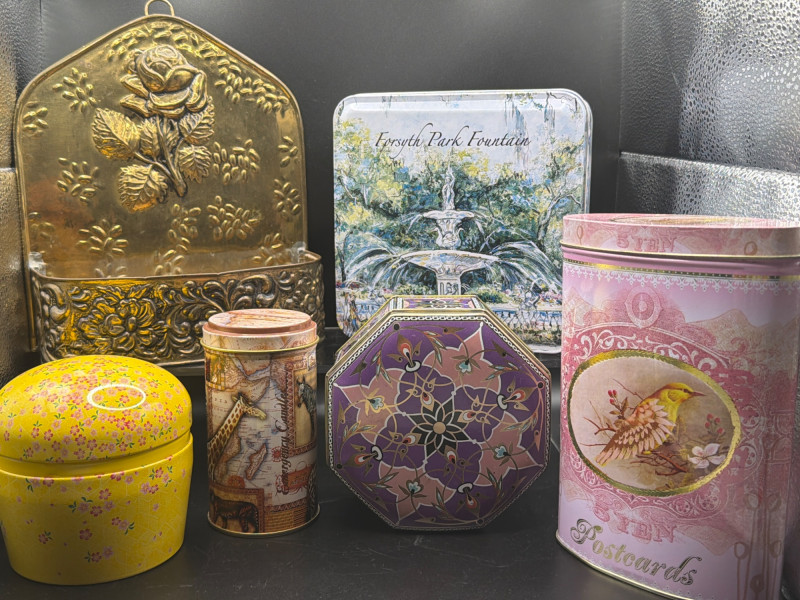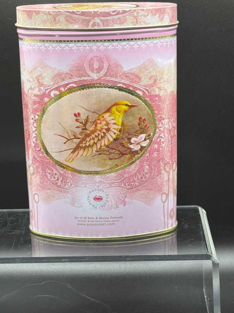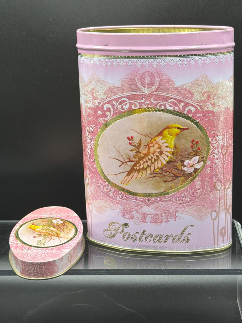 Charming collection of six decorative tins featuring colorful floral, bird, and vintage-style designs. Lots like this are popular with collectors, crafters, and decorators who enjoy repurposing beautiful tins for storage and display. This lot includes five decorative tins plus one larger tin planter-style container. The tins feature a variety of attractive themes, including birds, florals, scenic imagery, and decorative patterns, making them eye-catching pieces for kitchens, craft rooms, or display shelves. Included in this lot: Vintage tins like these are commonly reused for tea storage, cookies, craft supplies, sewing notions, buttons, jewelry, or small keepsakes. Many collectors enjoy them for their colorful artwork and nostalgic packaging designs. They also make wonderful rustic décor pieces for farmhouse kitchens, craft rooms, or vintage-themed displays. With Easter approaching, decorative tins like these can be perfect Easter basket alternatives, gift containers, or egg hunt prizes filled with treats or small gifts. Please review photos carefully to see the exact items included in this auction lot. Pre-owned tins showing normal wear consistent with age and use, including possible light scratches, minor dents, or paint wear. Overall, attractive decorative condition. Please review photos for details. Shipping available. Combined shipping offered for multiple auction wins whenever possible. Decorative tins have long been used for packaging tea, biscuits, candy, and specialty foods. Because of their colorful designs and sturdy construction, many tins were saved and reused rather than discarded. Today these tins are popular with collectors of vintage packaging, crafters, and home decorators who appreciate their nostalgic artwork and practical storage use.