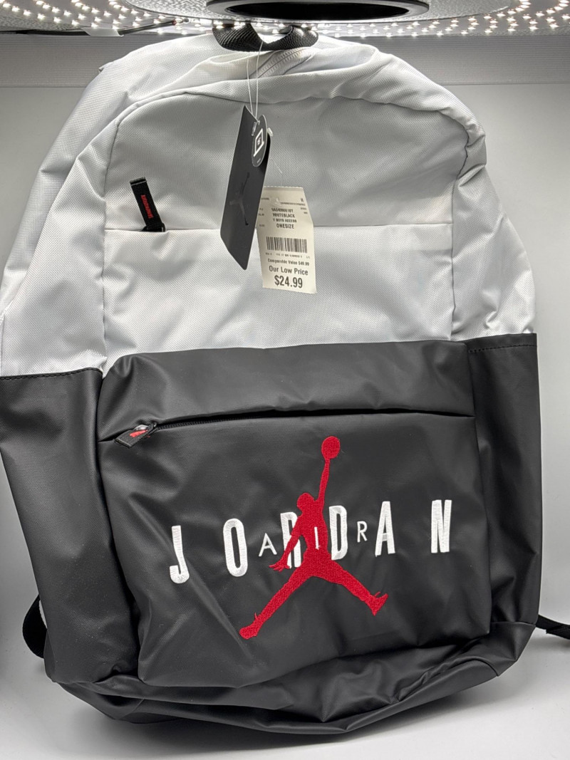 A Nike Air Jordan backpack featuring the iconic red Jumpman logo and bold “Jordan” lettering, combining athletic style with everyday practicality. The modern gray and black color design gives the bag a clean, sporty look while highlighting one of the most recognizable symbols in basketball culture. Designed for daily use, this backpack offers a spacious main compartment along with additional pockets to keep items organized. The durable construction makes it well suited for school, sports, travel, or everyday carry, while the lightweight design keeps it comfortable to use throughout the day. Jordan gear remains highly sought after by athletes, students, and collectors alike thanks to its connection to one of the most legendary names in basketball. With Easter approaching, items like this can also make great Easter basket gifts for teens, students, or sports fans. Please review photos to see the exact item included in this lot. New with tags. Appears unused and includes the original retail tags. Please review photos for details. Shipping available. Combined shipping offered for multiple auction wins whenever possible. The Jordan brand by Nike is one of the most recognizable names in sports apparel and accessories. Backpacks featuring the Jumpman logo are popular for their durable design, athletic styling, and everyday versatility.