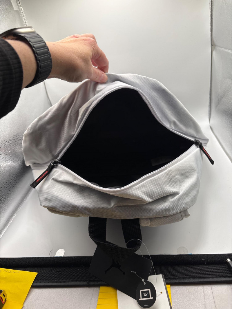 Lot # 176 - 1 Nike Air Jordan Backpack White Black w/ Red Jumpman Logo NWT