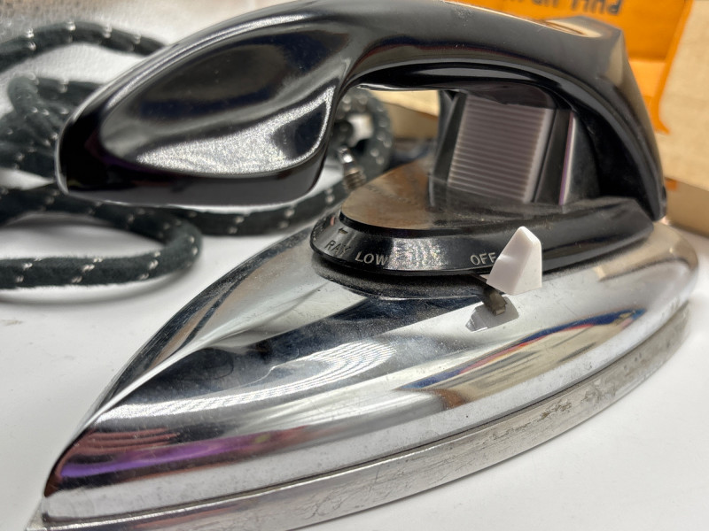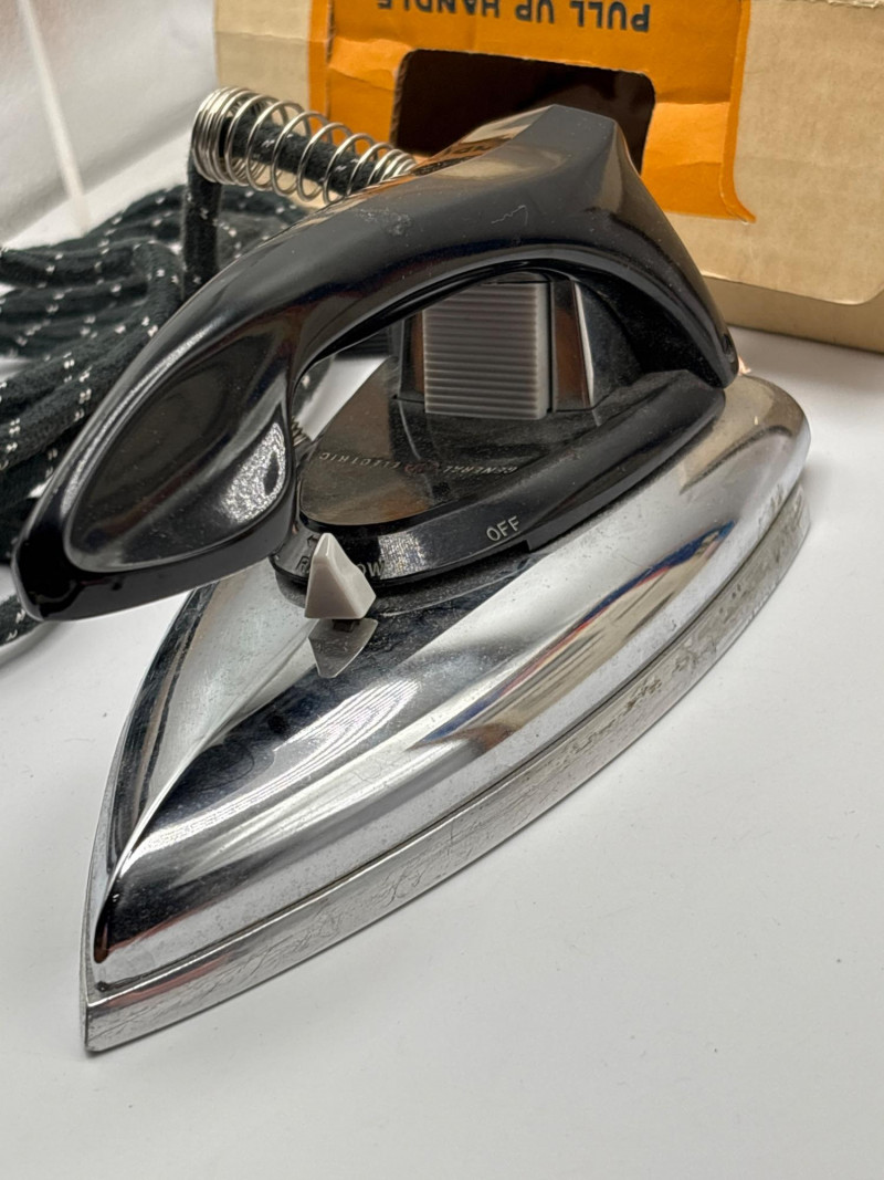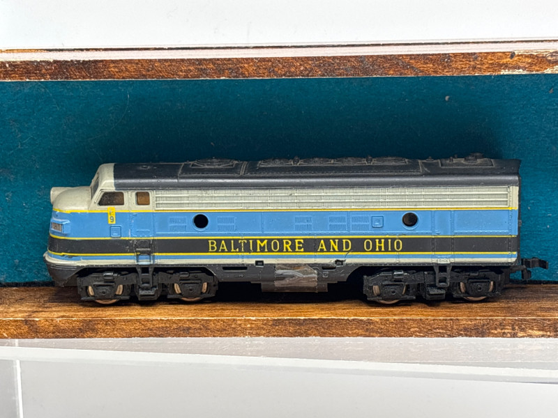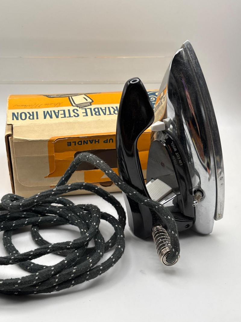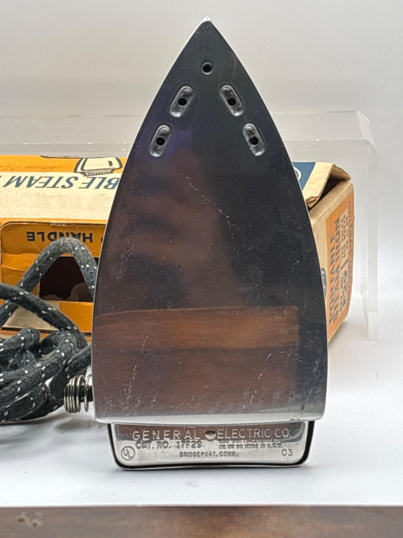 An eclectic vintage collectible lot featuring a model train locomotive, wooden display box, colorful fruit crate label, vintage record, and a boxed General Electric travel steam iron. This assortment brings together several mid-century style pieces that appeal to collectors of railroad memorabilia, advertising graphics, and vintage household items. Included is a Baltimore and Ohio diesel locomotive model displayed in a fitted wooden box, along with a striking “Red Rooster” asparagus crate label from A. Levy & J. Zentner Co. of Firebaugh, California—a classic example of colorful produce advertising artwork. The lot also features a Lawrence Welk “At Madison Square Garden” Coral Records LP, plus a General Electric portable steam iron (Cat. No. F-29) in its original box. Mixed collectible lots like this are especially fun because they bring together different areas of vintage collecting—railroad memorabilia, advertising labels, music history, and mid-century appliances. With Easter approaching, some smaller collectible items like these can also make unique additions to Easter baskets or fun treasures for collectors to discover. Please review photos carefully to see the exact items included in this lot. Vintage pre-owned condition with wear consistent with age and storage. Packaging and paper items show age-related wear. Untested items are sold as collectible display pieces. Please review photos for details. Shipping available. Combined shipping offered for multiple auction wins whenever possible. Mid-century collectibles such as fruit crate labels, model trains, and early electric appliances remain popular with collectors because they represent a time when advertising art, household design, and transportation memorabilia all carried distinctive style and craftsmanship.Description