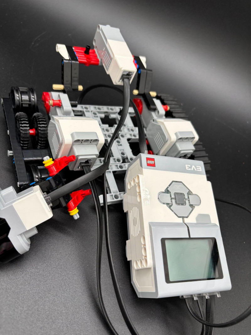 Power up and roll out! This exciting lot features a LEGO Mindstorms EV3 programmable brick mounted on a tracked robotic base PLUS a rugged custom-built LEGO Technic off-road vehicle. This is a fantastic opportunity for builders, coders, and LEGO fans who love robotics and engineering. Included: LEGO EV3 Intelligent Brick Dual-motor tracked robotic base Custom Technic-style off-road vehicle with oversized tires Attached cables and components as shown Condition: Perfect for: Robotics enthusiasts STEM students LEGO Technic collectors Creative builders and tinkerers Great hands-on building and programming potential — don’t miss this fun and functional LEGO robotics lot!