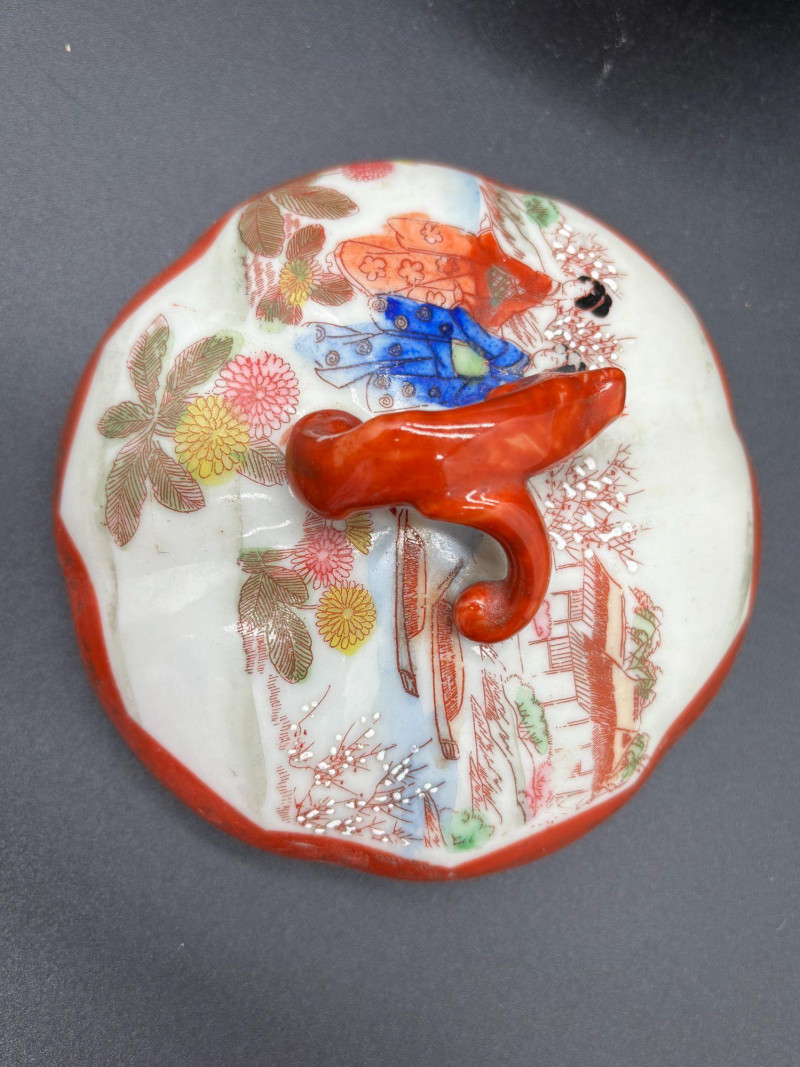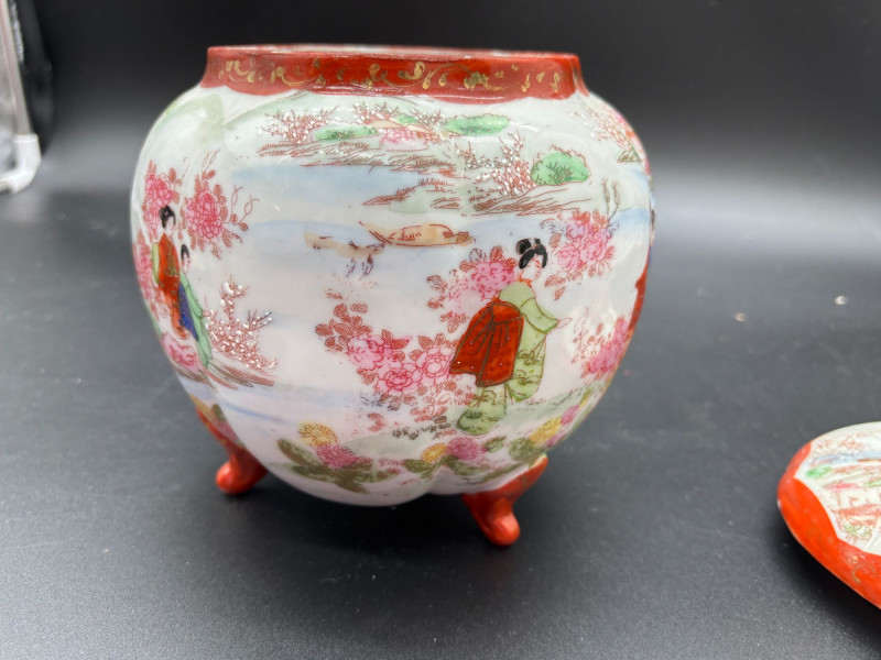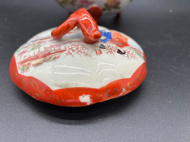 Good vintage condition overall. There is a small chip on the lid (see photos). No other major cracks or repairs were observed.
