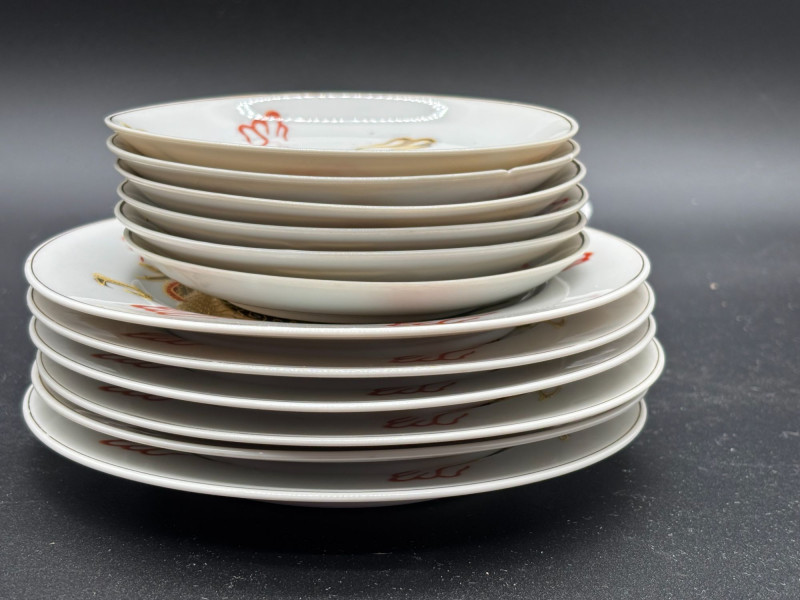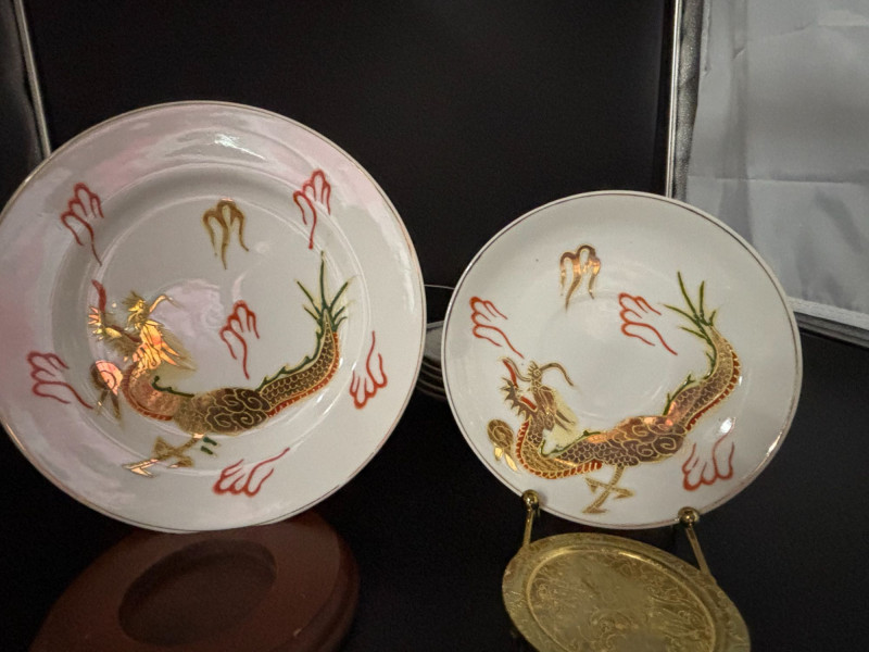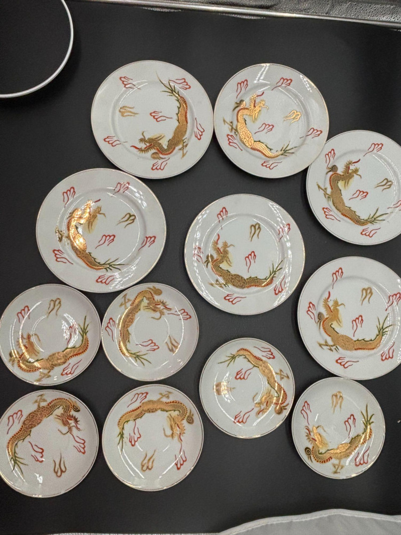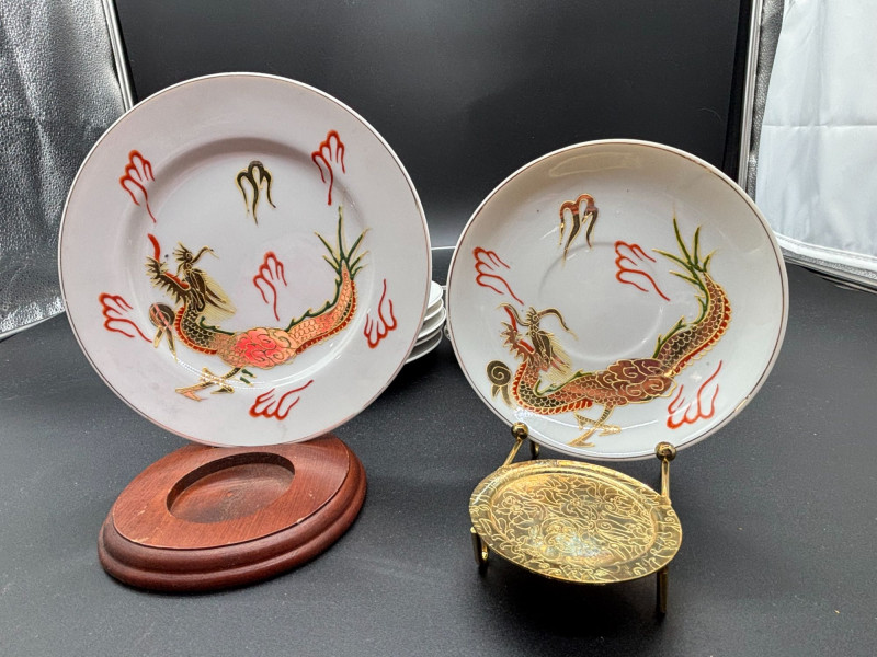 Lot # 42 - 🐉✨ Vintage Asian Dragon Plate Set – 12 Pieces – Tea & Dessert Sizes ✨