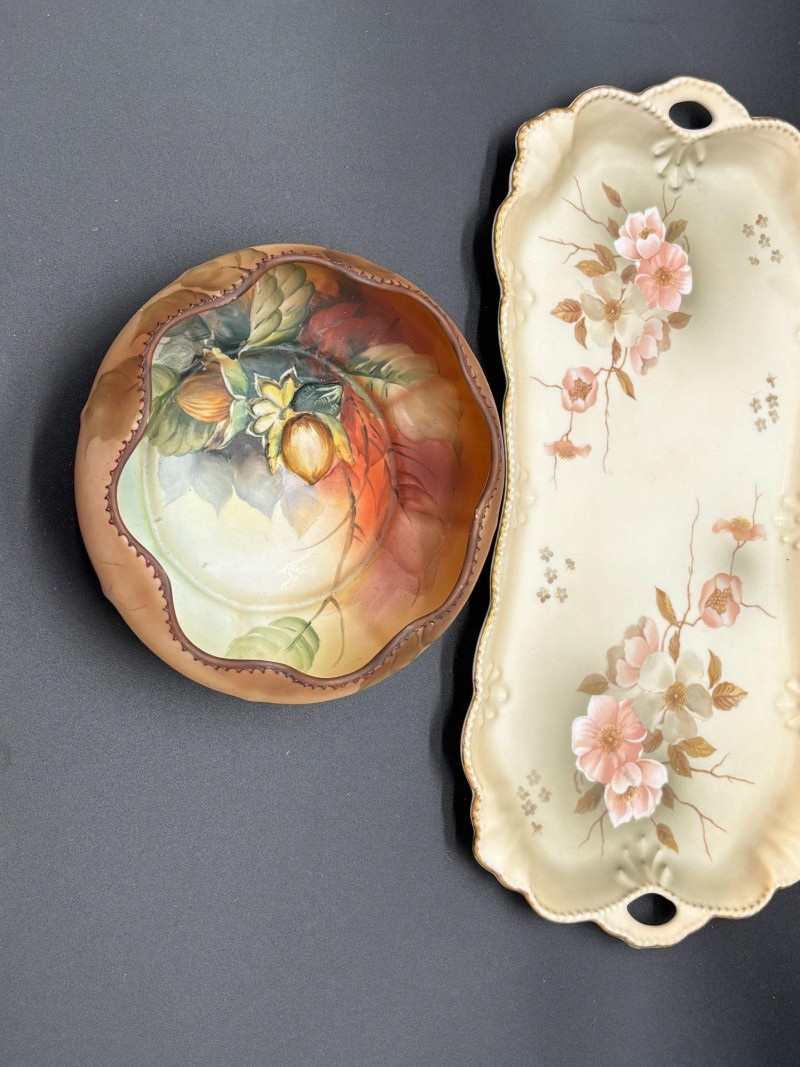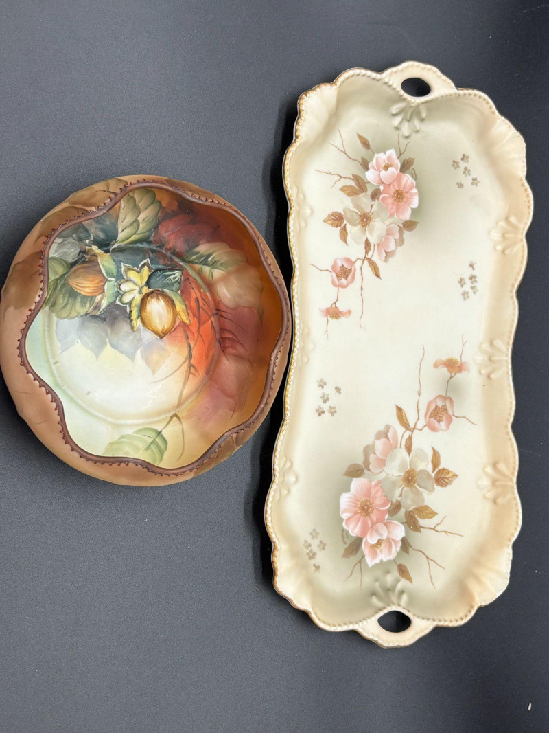 Shippable Charming vintage porcelain duo featuring two beautifully detailed pieces perfect for display or gifting! ✨ Hummel Floral Serving Tray ✨ Hand-Painted Nippon Walnut Plate Both pieces offer beautiful vintage craftsmanship and complement each other wonderfully with their soft, floral, and nature-inspired themes. Condition: Vintage condition consistent with age. Please review photos carefully for surface wear typical of display pieces. A sweet and collectible pairing ready to brighten any space! 🌿