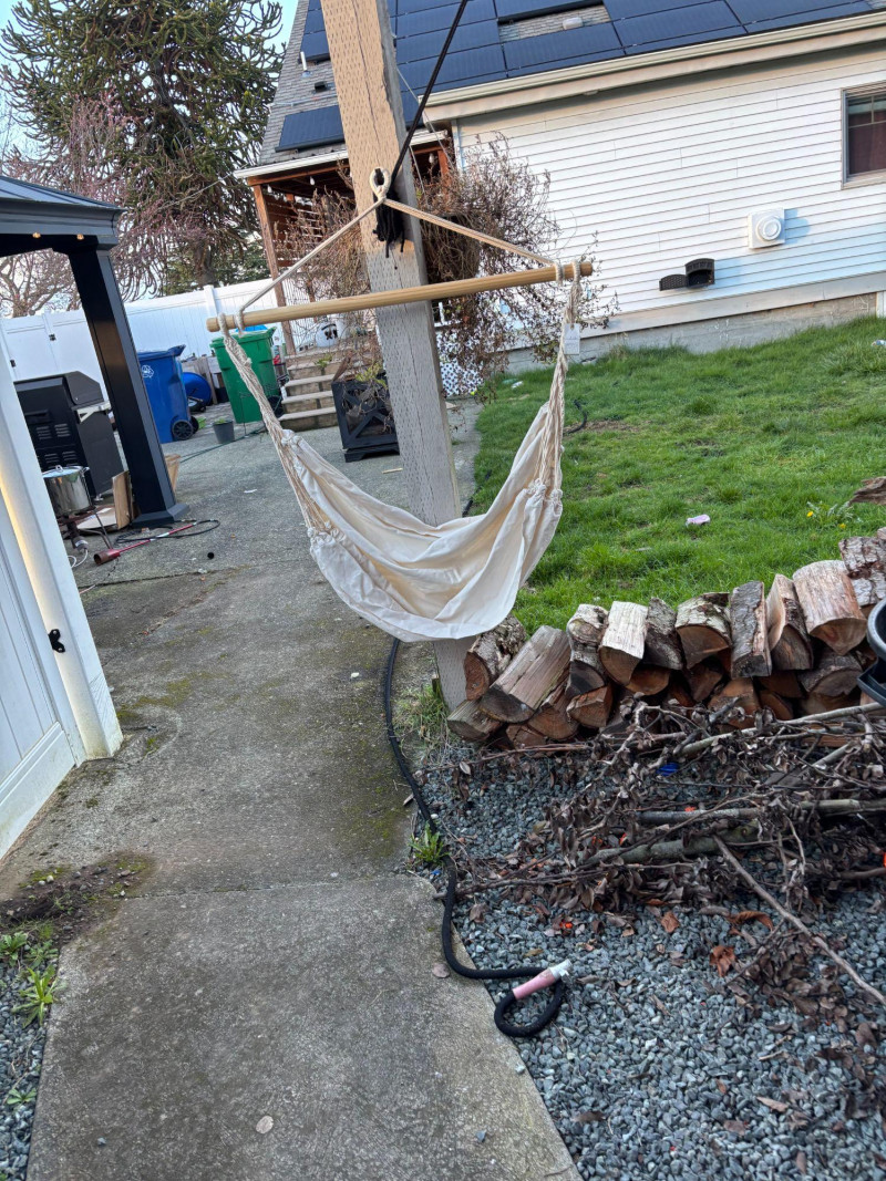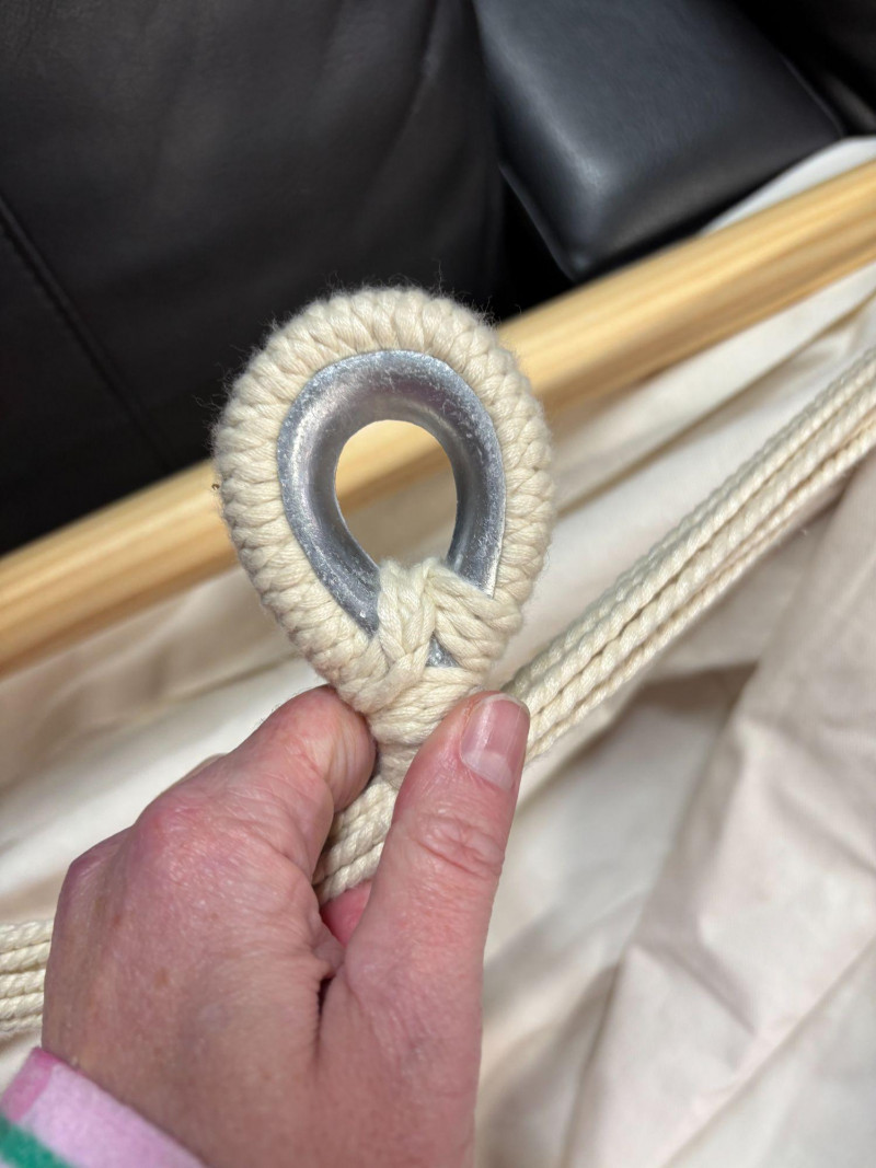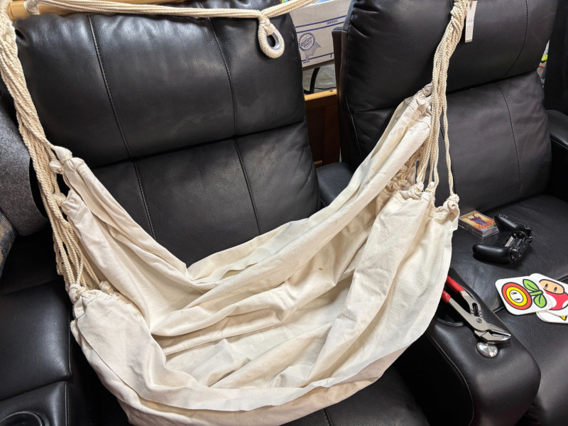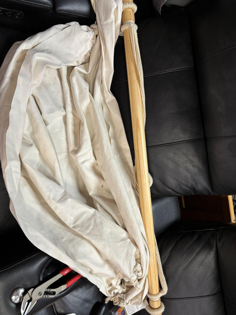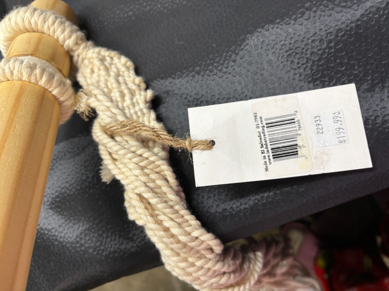 NOT SHIPPABLE Indaba Hanging Hammock Chair β Natural Cotton β Never Used β With Original Tag Beautiful natural cotton hammock chair by Indaba. This piece has never been used and still has the original retail tag attached ($199.99). Features a sturdy woven cotton rope, a solid wooden support bar, and a neutral canvas sling seat. Perfect for indoor reading nooks, covered patios, or relaxing outdoor spaces. Details: Brand: Indaba Condition: New, never used β original tag attached Natural cotton rope and canvas Solid wood spreader bar Neutral cream color A stylish, comfortable accent piece, ready to hang and enjoy.