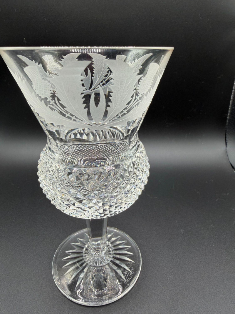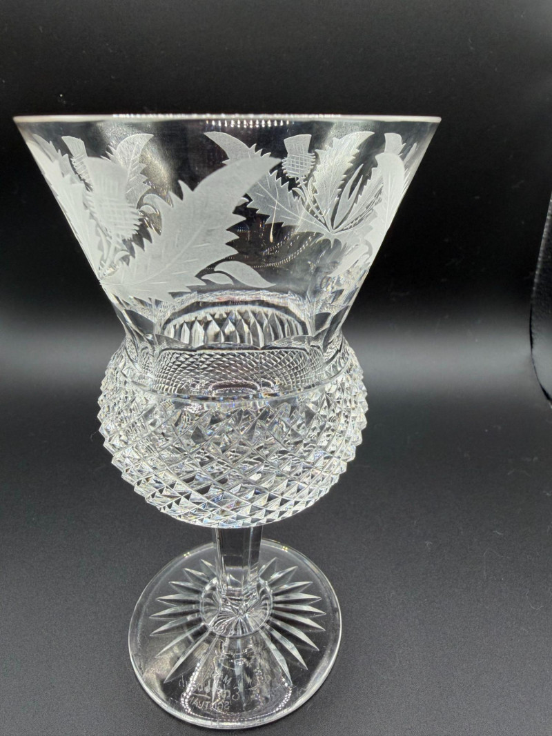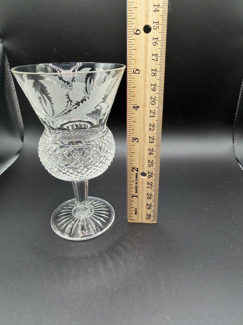 Lot # 48 - Edinburgh Crystal Etched Thistle Stemware – Cut Crystal – Scotland