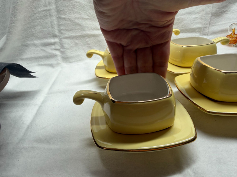 Lot # 49 - ☀️ Mid-Century Yellow Square Demitasse Set – 5 Cups & Saucers