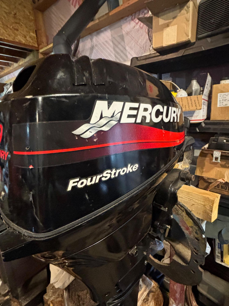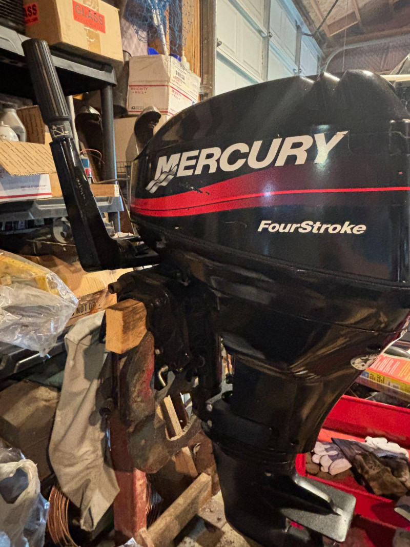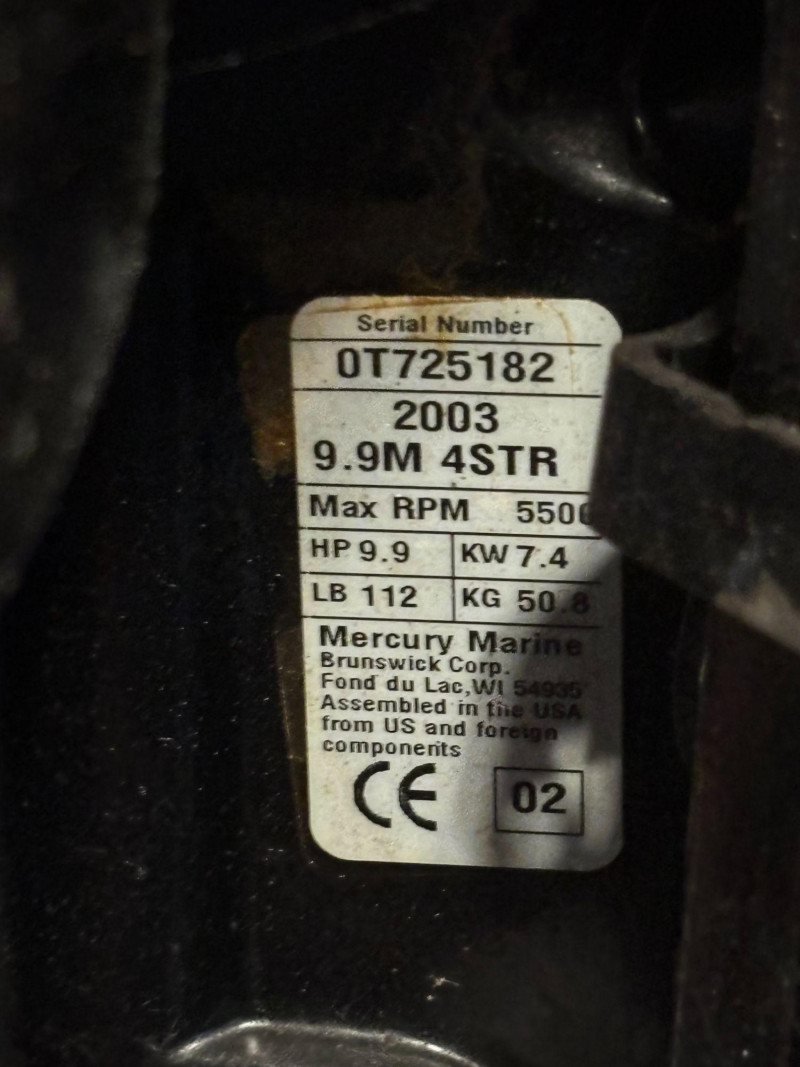 Reliable power in a compact package—this Mercury 9.9HP FourStroke outboard motor is a proven performer for small boats, tenders, and fishing setups. Manufactured in 2003 by Mercury Marine, this 4-stroke engine delivers efficient, quieter operation compared to older 2-stroke models, making it a great choice for lakes, trolling, or everyday boating. Key details: Mercury is known for durability and easy maintenance, and this size motor is especially popular for small aluminum boats, inflatables, and kicker motors. Good pre-owned condition. Shows normal cosmetic wear consistent with use, including light scuffs and marks. Please review photos carefully for full condition details. No shipping. Local pickup only.