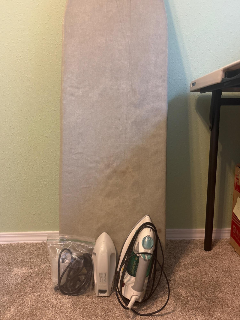 Everything you need for everyday garment care in one convenient lot—this ironing board and steam iron set is a practical, ready-to-use household essential. This lot includes: ✔️ Full-size ironing board (~53" long) with padded surface A great setup for handling everything from quick touch-ups to full ironing jobs, offering flexibility for different fabrics and needs. ✔️ Complete ironing and steaming solution Perfect for anyone setting up a home, upgrading laundry essentials, or needing a reliable backup set. untested. Pre-owned condition. Items may show light wear consistent with normal use. Shipping available. Please email or text to request shipping. Once your invoice is paid, a second invoice will be sent for actual shipping costs.