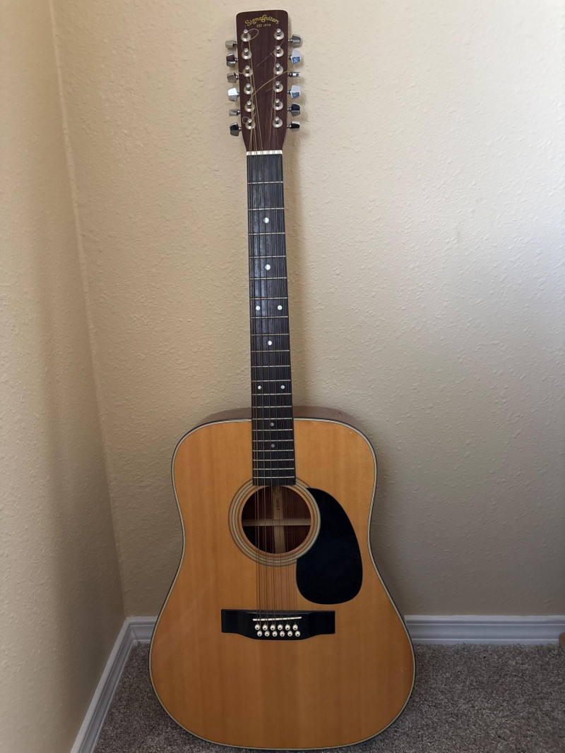 A beautiful Sigma DM12-5 12-string acoustic guitar, a model known for its connection to the early Sigma line produced under the direction of C.F. Martin & Co.
