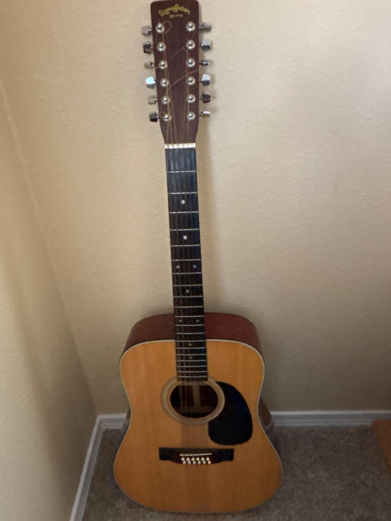This guitar delivers the rich, full-bodied sound that 12-strings are loved for—perfect for adding depth, shimmer, and presence whether you're playing folk, rock, or acoustic sets. ✔️ Sigma DM12-5 12-string acoustic Sigma guitars from this era were built to offer Martin-style tone and craftsmanship at a more accessible level, making them highly sought after today by both musicians and collectors. Beautiful pre-owned condition. The guitar presents very well with a clean body and attractive finish. Strings are tight and the instrument produces an excellent, full 12-string sound with rich tone and projection.Shows only light, typical wear consistent with normal use. Includes hard case.Please review all photos carefully—pictures are part of the description. 🚚 Shipping No shipping available for this item. Local pickup only. Please bring appropriate help and vehicle for transport.