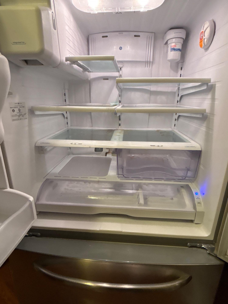 This unit offers the convenience of double doors up top and a pull-out bottom freezer, along with a built-in water and ice dispenser for everyday ease. ✔️ GE French door refrigerator A great opportunity to get a full-size, name-brand refrigerator at auction pricing—perfect for a home, rental, or upgrade. Approximate: (See manufacturer label for additional specifications) Pre-owned condition. Refrigerator powers on and was in use. Shows typical wear consistent with normal household use. Please review all photos carefully—pictures are part of the description. No shipping available for this item. Local pickup only. Buyer must bring adequate help and equipment for removal.