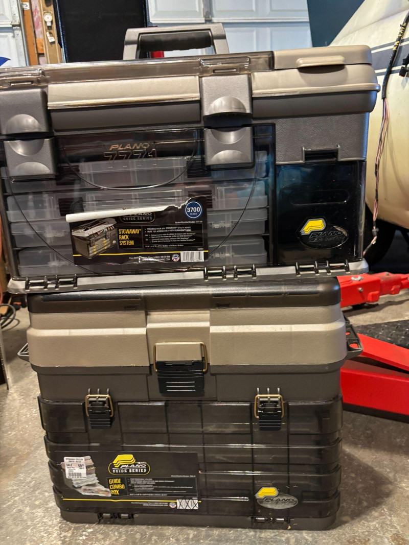 Get organized with this pair of Plano Guide Series tackle box systems, offering durable storage and versatile use for fishing gear, tools, or workshop supplies. These combo-style units feature multiple compartments and trays, giving you plenty of space to keep everything sorted and easy to access. Built with Plano’s trusted design, they’re made for both convenience and durability. ✔️ Includes 2 Plano Guide Series systems Having two units makes this a great setup for separating gear, organizing projects, or sharing between locations. Excellent pre-owned condition. Both appear to have seen little to no use—clean inside and out with minimal signs of handling. Please review all photos carefully—pictures are part of the description. Shipping available. Will be packaged with care.