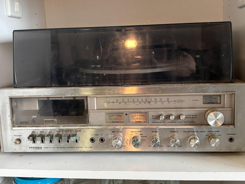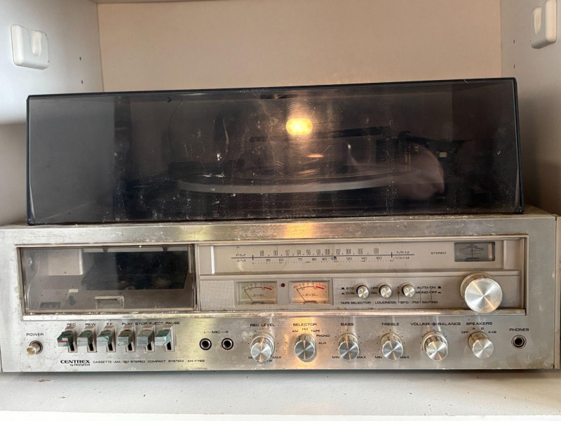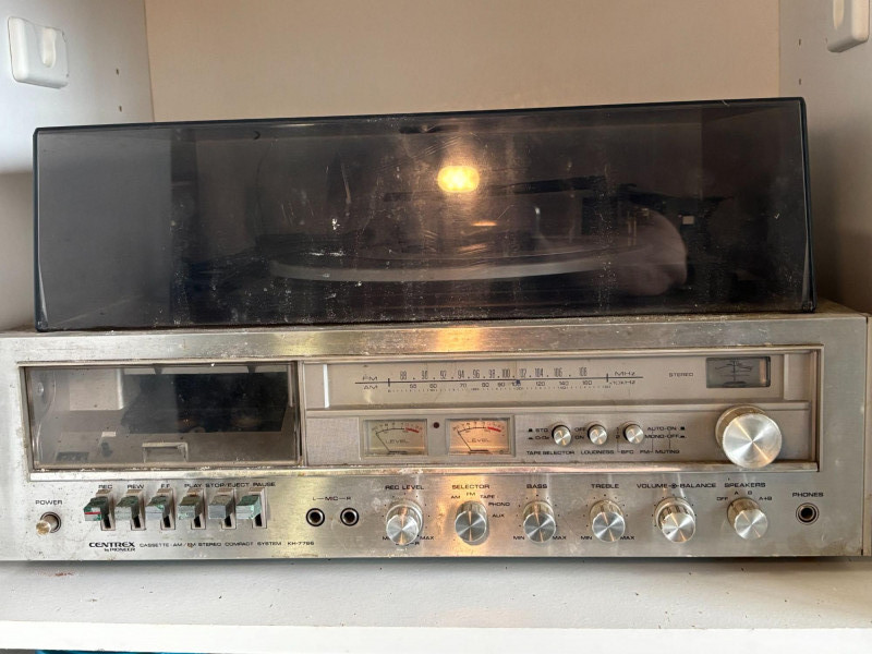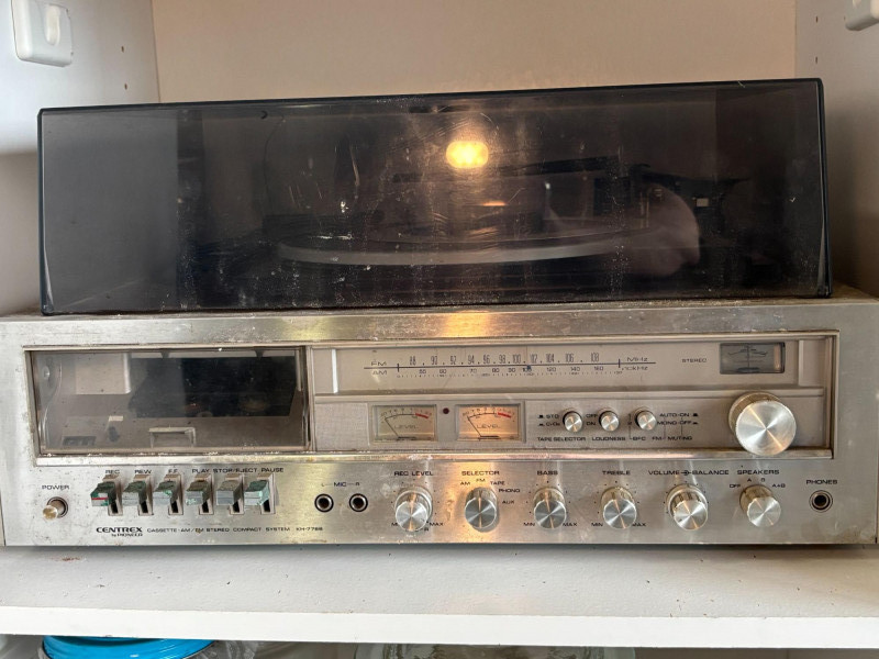 Step back into classic hi-fi with this vintage Centrex (by Pioneer) stereo system, featuring a built-in turntable, cassette deck, and AM/FM radio—all in one retro unit. This all-in-one system delivers that warm analog feel collectors and vintage audio fans love. The unit includes multiple controls for tuning and sound adjustment, along with a protective dust cover over the turntable. A small speaker is also included, making this a great starter setup or restoration project. Perfect for vinyl enthusiasts, retro décor, or anyone looking to bring vintage audio style back to life. Untested. Shows visible cosmetic wear including dust, surface marks, and age-related wear. Functionality not verified—may need servicing. Sold as-is for parts, repair, or restoration. Please review photos carefully. No – Local pickup only