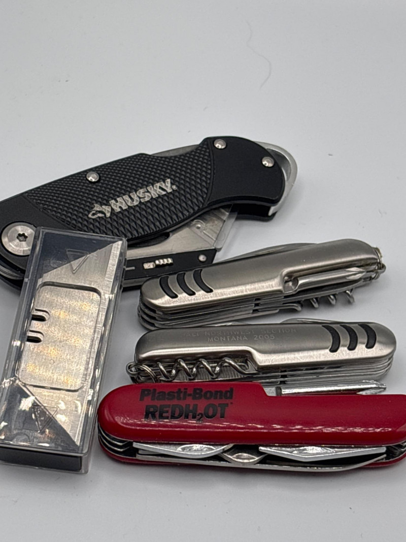 Everything you need in one grab—ready for the toolbox, truck, or jobsite. A practical, ready-to-use tool bundle perfect for everyday jobs, quick fixes, and keeping on hand in your truck, garage, or toolbox. This lot includes a mix of essential cutting and multi-use tools, making it a great value whether you’re a DIYer, contractor, or just like to be prepared. The Husky folding utility knife features a comfortable grip and uses standard replaceable blades (included), while the additional multi-tools provide convenient all-in-one functionality for a variety of tasks. Compact, portable, and useful—this is the kind of set you’ll reach for again and again. Ideal for home projects, job sites, glove compartments, or as a backup tool kit. Good used condition. Tools show light wear consistent with normal use. Blades included. Please review photos for full details. Shipping available. We are happy to combine shipping on multiple items when possible.
