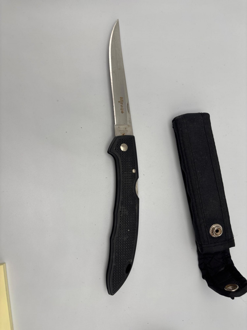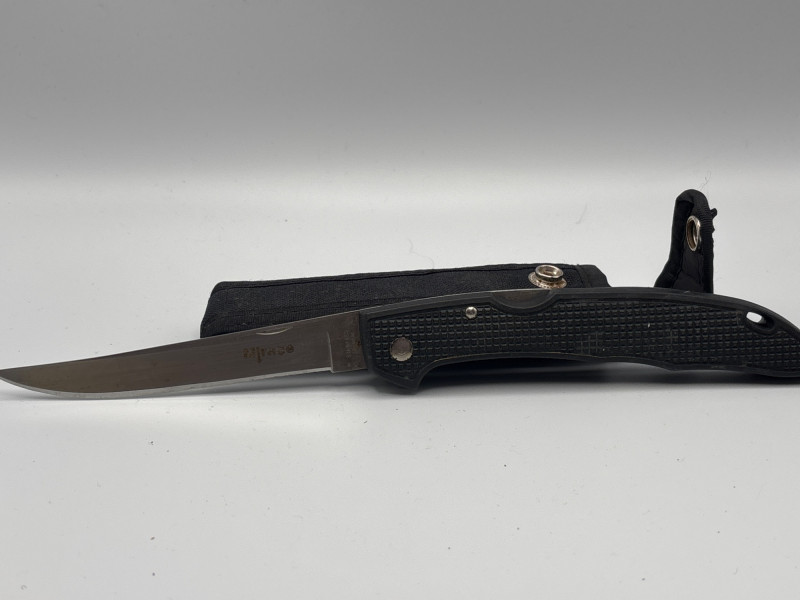 A dependable blade built for everyday carry and outdoor use. A sleek and practical Ridge folding knife designed for everyday carry, outdoor use, or keeping close at hand when you need it most. This knife features a stainless steel blade with a clean, sharp profile and a textured handle for a secure, comfortable grip. Its lightweight, folding design makes it easy to carry, while the included sheath provides added protection and convenience. Whether you're adding to your gear, keeping a reliable tool in your vehicle, or heading outdoors, this knife delivers simple, dependable performance. Good used condition with light wear consistent with use. Blade appears solid and functional. Includes sheath. Please review photos for full details. Shipping available. We are happy to combine shipping on multiple items when possible.