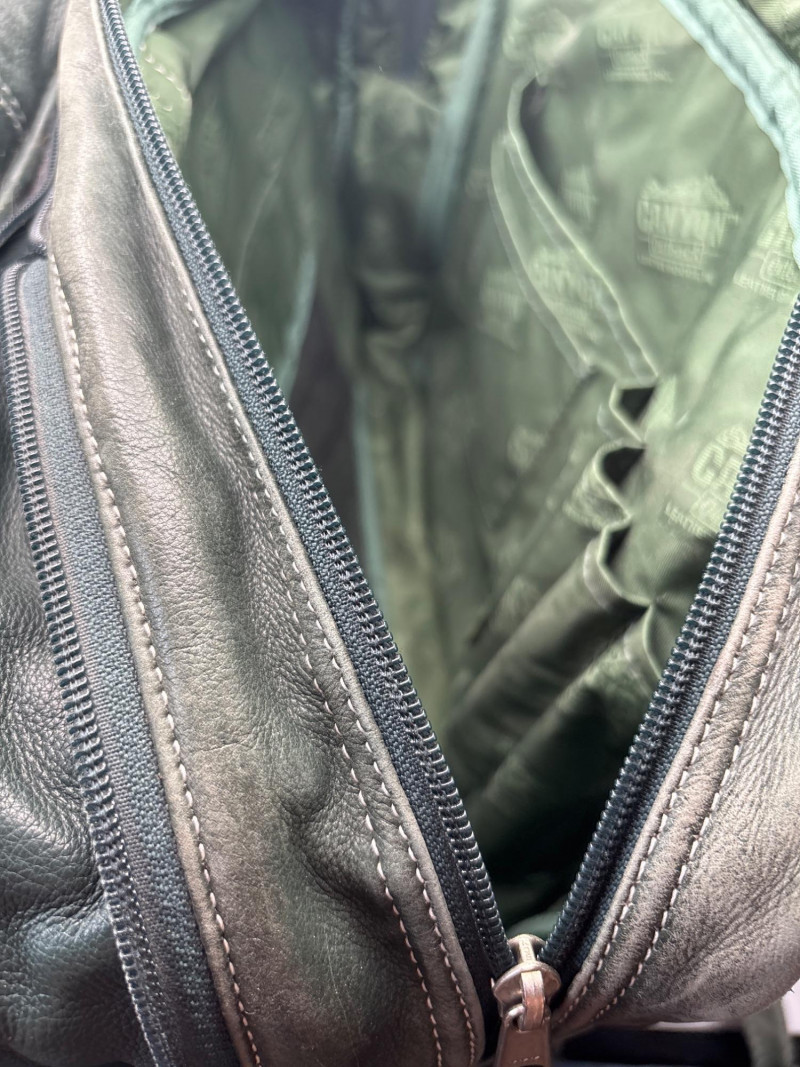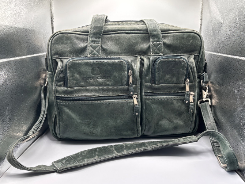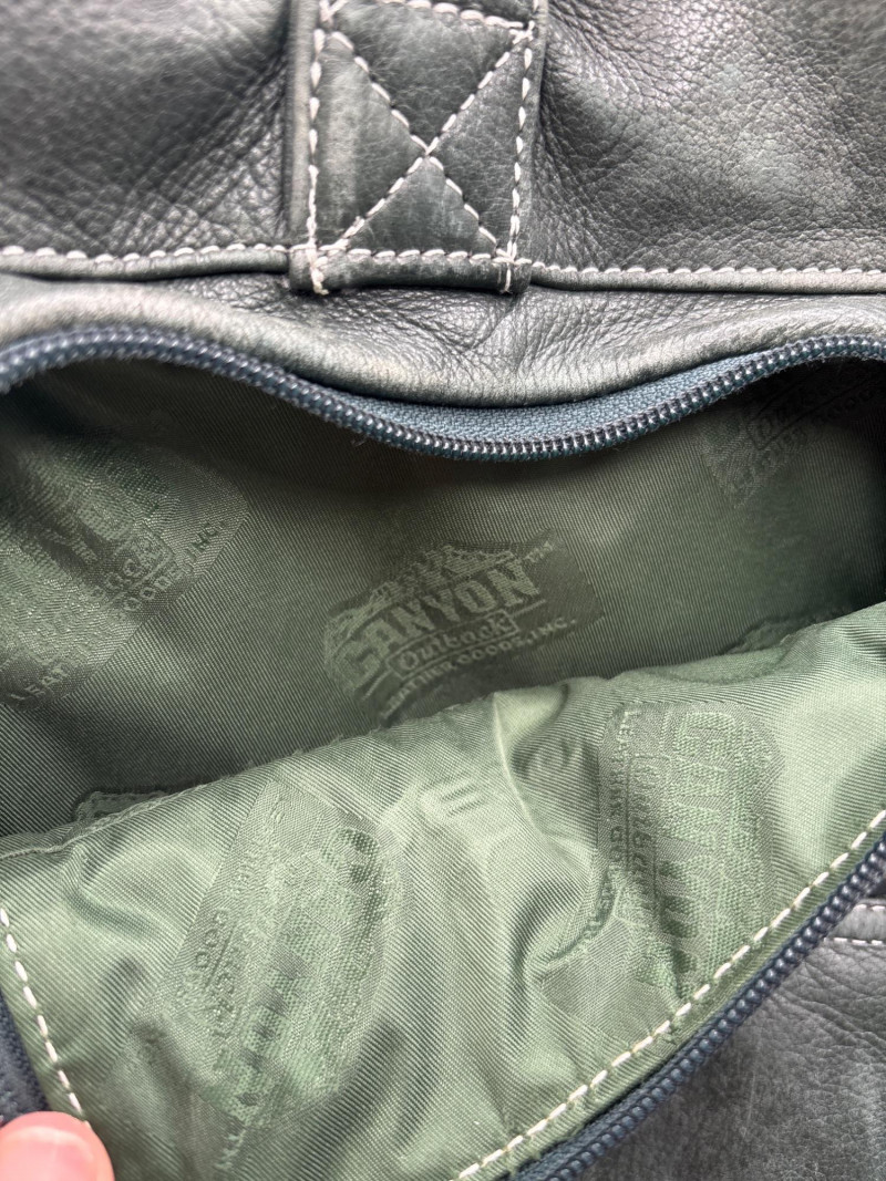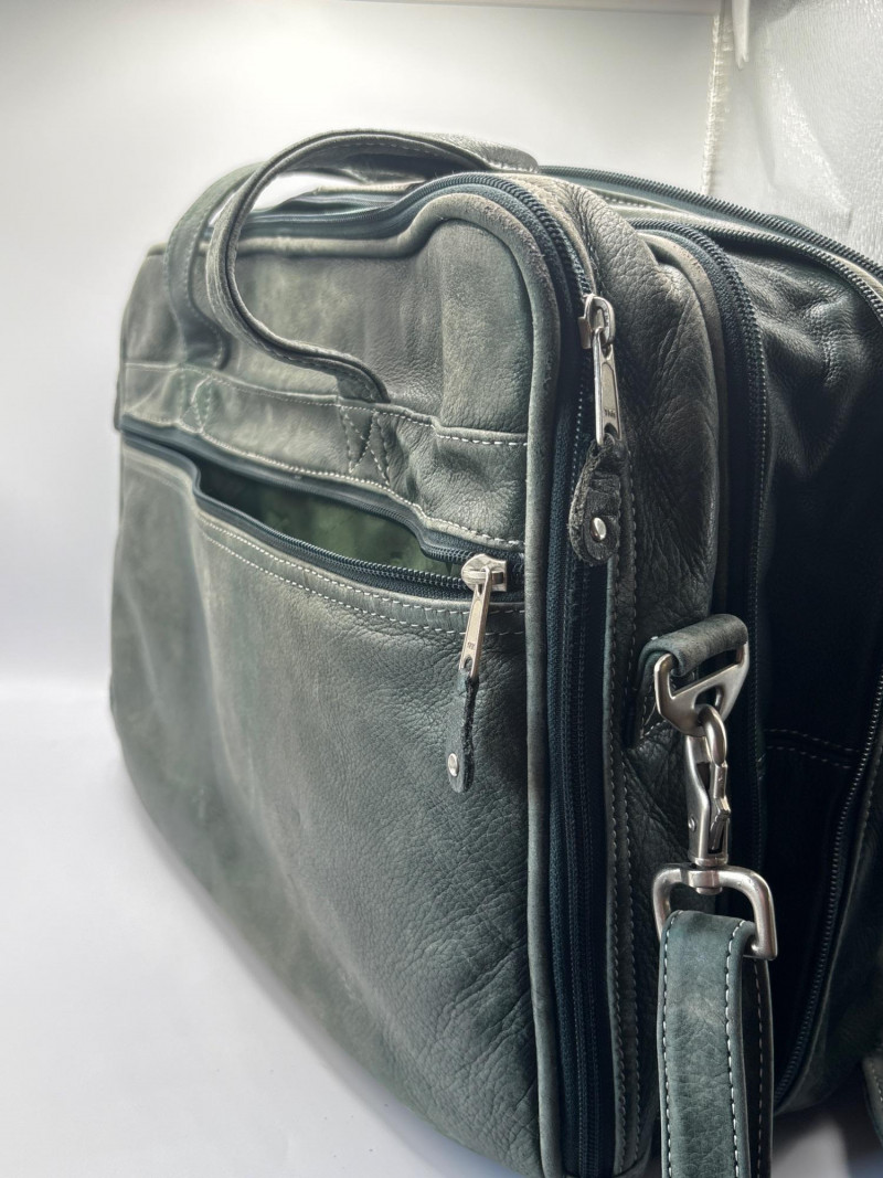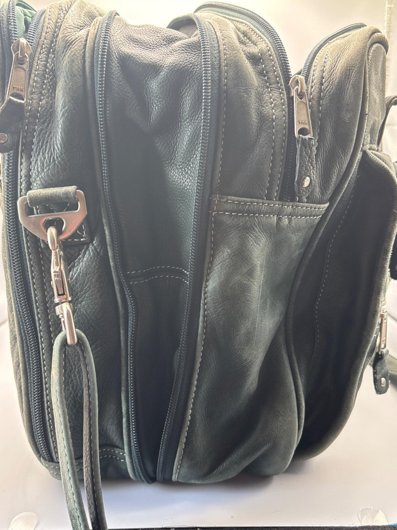 That perfectly broken-in leather look—without the wait. A stylish green leather bag with that sought-after worn, broken-in look that only gets better with time. This piece blends rugged character with everyday functionality, making it perfect for work, travel, or daily use. Featuring multiple zippered compartments and pockets, this bag offers plenty of space to stay organized while keeping everything easily accessible. The soft leather exterior has a naturally distressed finish, giving it a relaxed, vintage vibe that pairs effortlessly with both casual and professional styles. Carry it by hand or use the adjustable shoulder strap for added versatility—this is the kind of bag that looks just as good in the office as it does on the go. Good used condition. Natural wear and patina throughout, consistent with use and part of the desired distressed look. Zippers and hardware appear functional. Please review photos for full details. Shipping available. We are happy to combine shipping on multiple items when possible.
