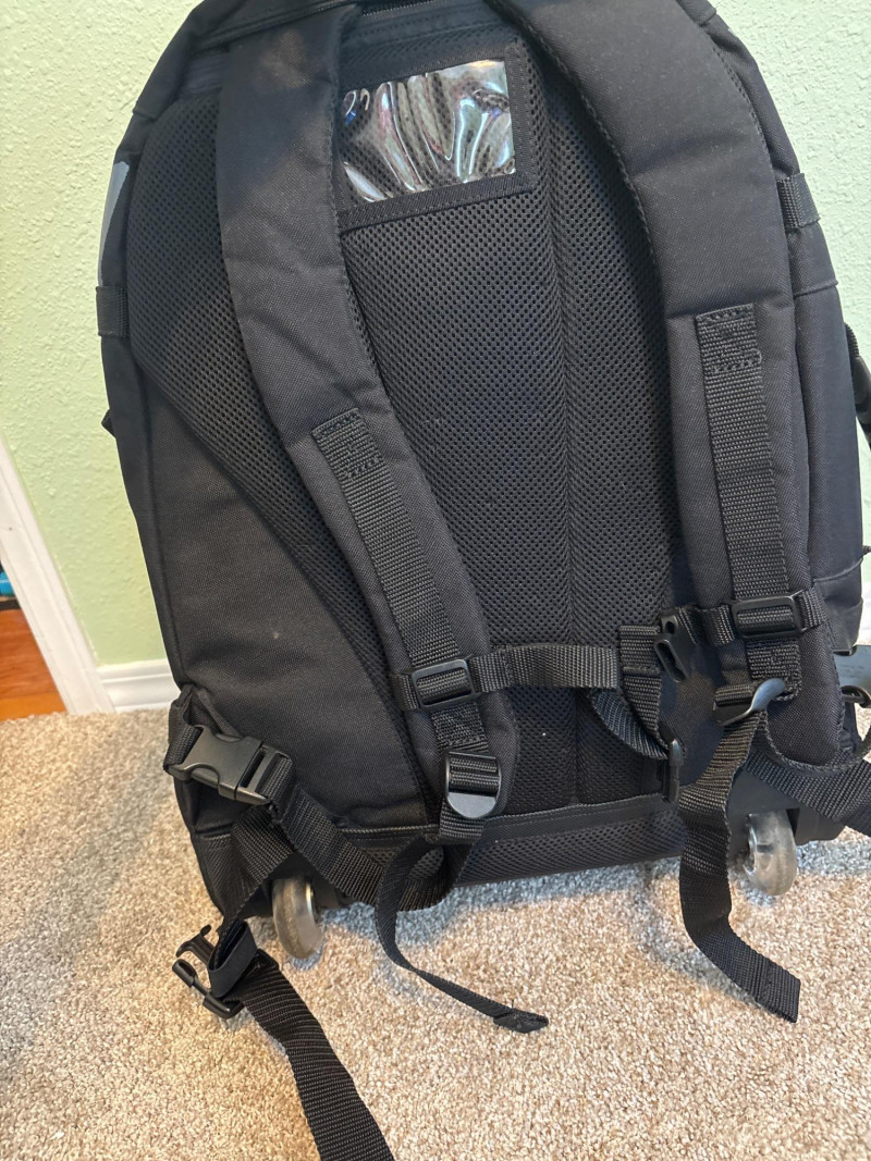 Grab-and-go travel system—roll it or wear it. Versatile Quiksilver travel set featuring a rolling bag paired with a matching backpack that easily attaches—giving you the flexibility to roll or carry depending on your needs. The rolling bag offers spacious storage and smooth mobility, making it perfect for travel, overnights, or school use. The backpack includes multiple compartments for organization and can be used separately or secured to the rolling bag for convenient transport. This combo is ideal for students, travelers, or anyone needing a practical, all-in-one carry solution. Great condition. Light signs of use consistent with normal wear. Both pieces function well. Zippers, straps, and handle are intact. Please review photos for details. Shipping available. We are happy to combine shipping on multiple items when possible.