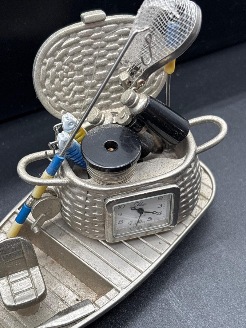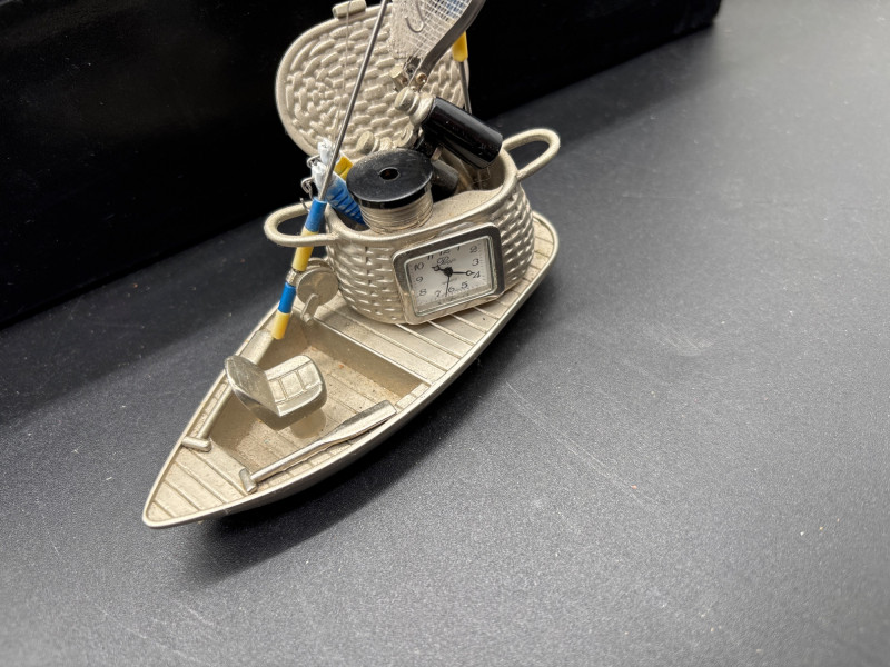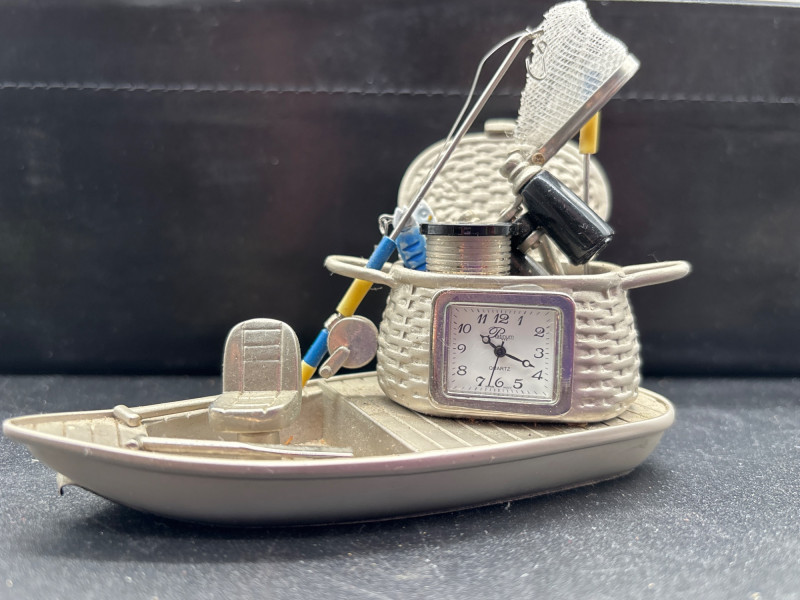 Fun and unique nautical décor lot featuring a mix of coastal-themed pieces, perfect for beach homes, cabins, or lake house styling. The standout piece is a beautifully crafted wooden kayak display (~15” long) complete with paddles, offering a classic maritime look. Also included is a decorative mini boat with a built-in clock, adding both function and charm, along with a palm tree candle holder and additional small accent pieces to complete the coastal vibe. A great mix for decorating shelves, mantels, or themed spaces. Pre-owned with light wear consistent with display use. Clock functionality not tested. No major damage noted. Sold as-is—please review photos for details and included items. Yes – shipping available. Combined shipping offered when possible.