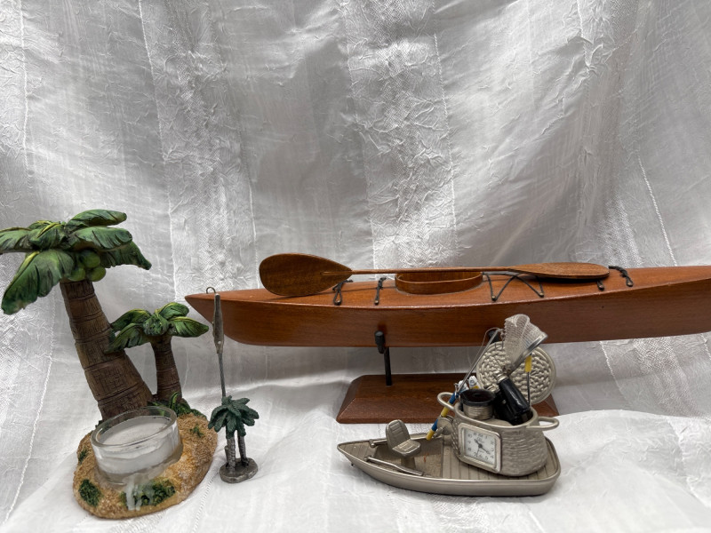 Lot # 82 - Nautical Decor Lot Wood Kayak Boat Palm Tree Coastal Pieces