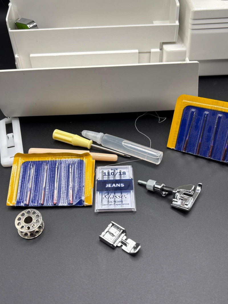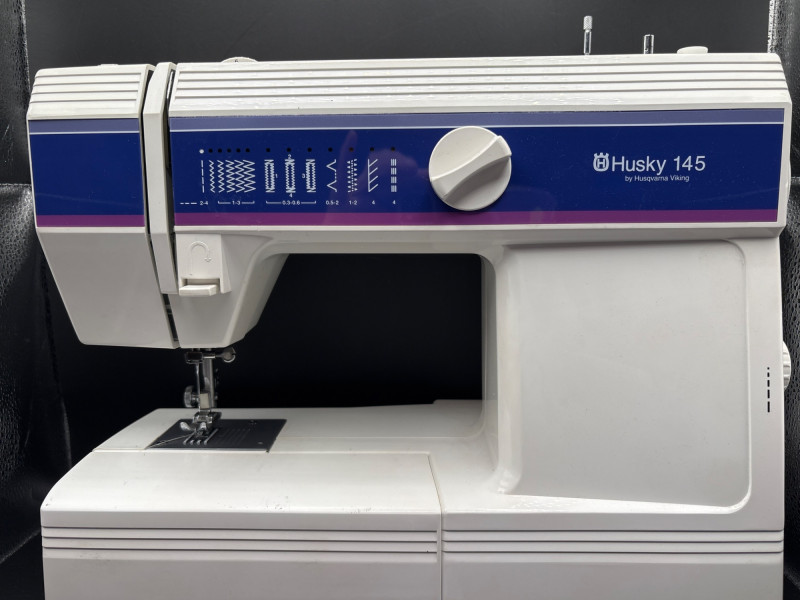 Ready for your next project. Husky 145 sewing machine by Husqvarna Viking in good working order. The machine powers on and was tested by sewing a strip of fabric. Features multiple stitch options with easy-to-use controls, making it a solid choice for everyday sewing, mending, or craft projects. A dependable machine for beginners or anyone needing an extra unit. Includes the original instruction manual, foot pedal, power cord, and accessory storage case. Not an expert, but the machine powers on and sewed a strip of fabric during testing. Normal cosmetic wear from use. Not all stitch settings tested. Sold as-is. Please review photos for details. Shipping available. We are happy to combine shipping on multiple items when possible.