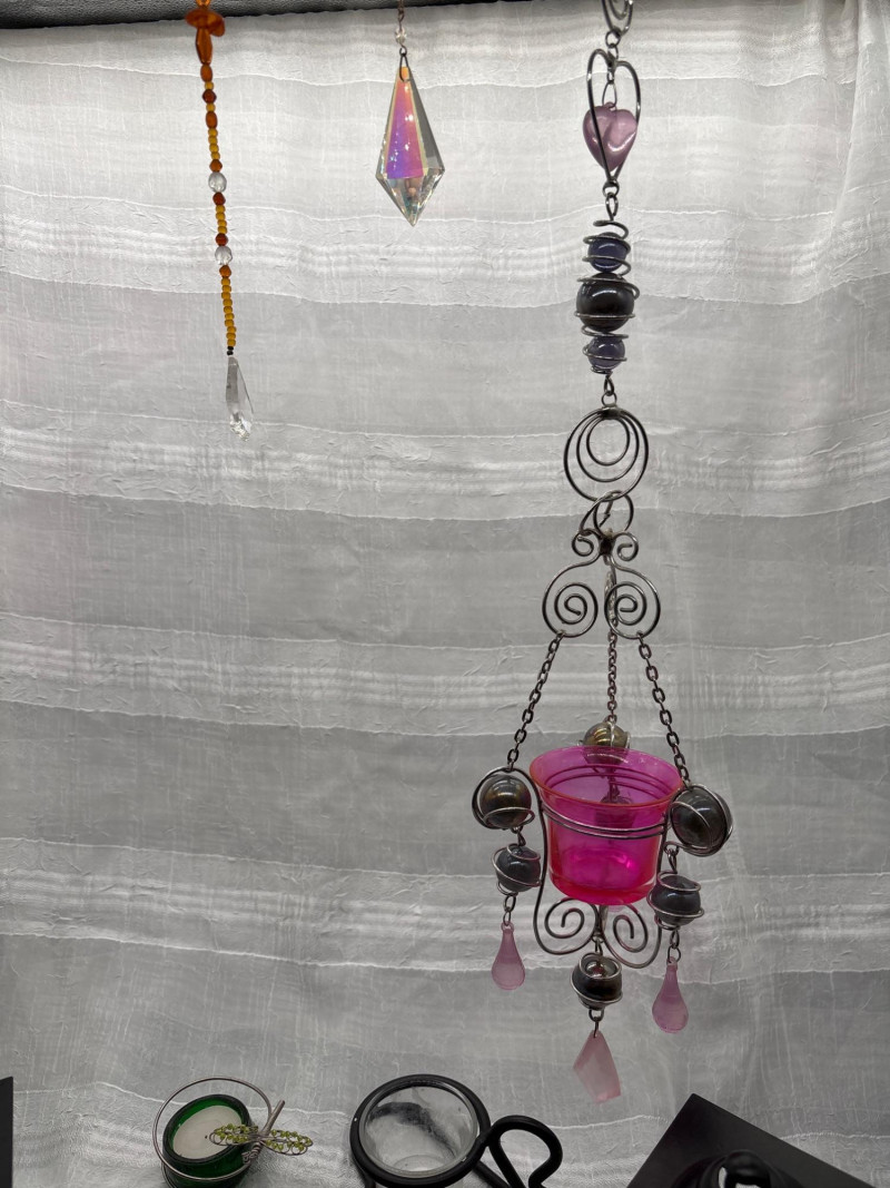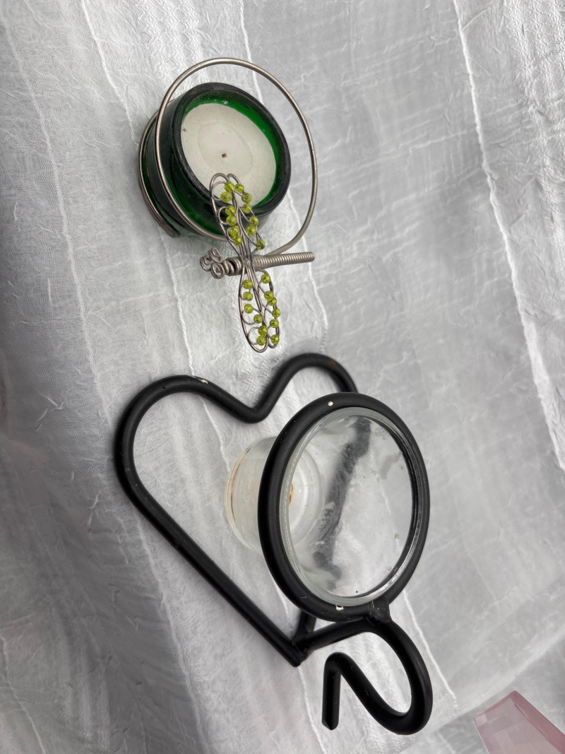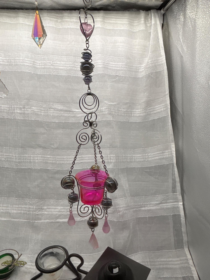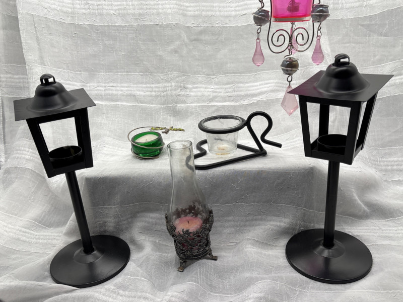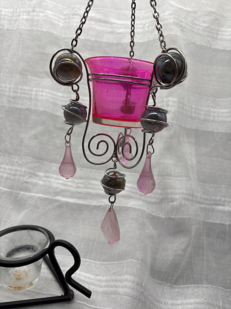 Charming mixed décor lot featuring a variety of candle holders, lantern-style pieces, and hanging crystal accents—perfect for adding warmth and character to any space. This collection includes a pair of mini street lamp-style candle holders, a decorative hanging candle holder with pink glass and metal scrollwork, a hurricane-style candle holder, and multiple accent pieces including crystal suncatchers and small decorative holders. Great for indoor décor, patios, or creating a cozy, layered lighting display. Pre-owned with light wear consistent with use and display. Some minor surface wear and residue from candles may be present. No major damage noted. Sold as-is—please review photos. Yes – shipping available. Combined shipping offered when possible.