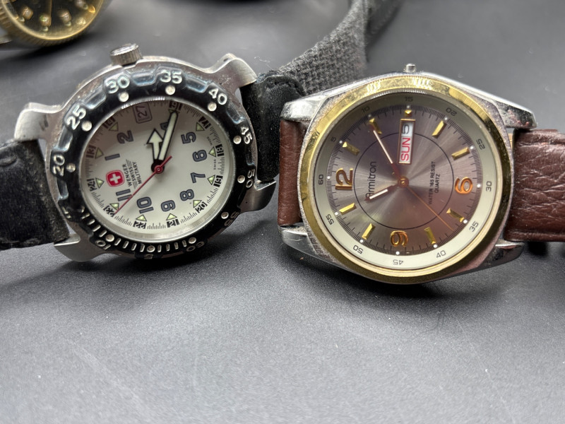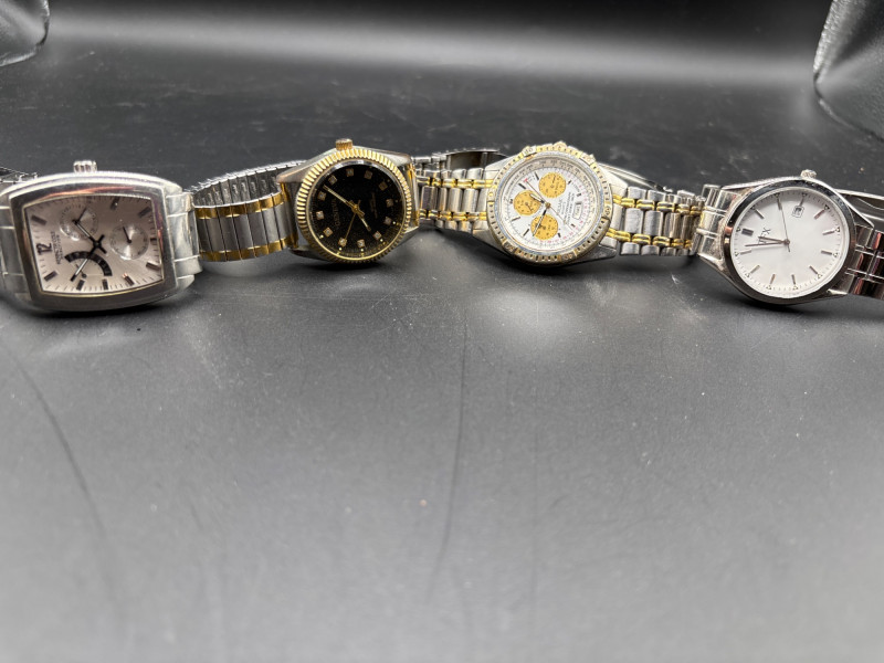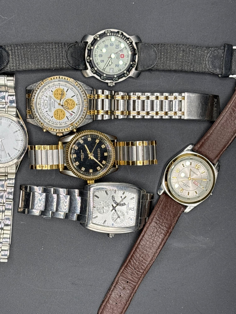 Classic styles, everyday wear, and collector potential in one lot. A mixed lot of men’s wristwatches featuring a variety of styles, brands, and finishes. This group includes both classic and modern designs, with stainless steel, gold-tone, and leather band examples.