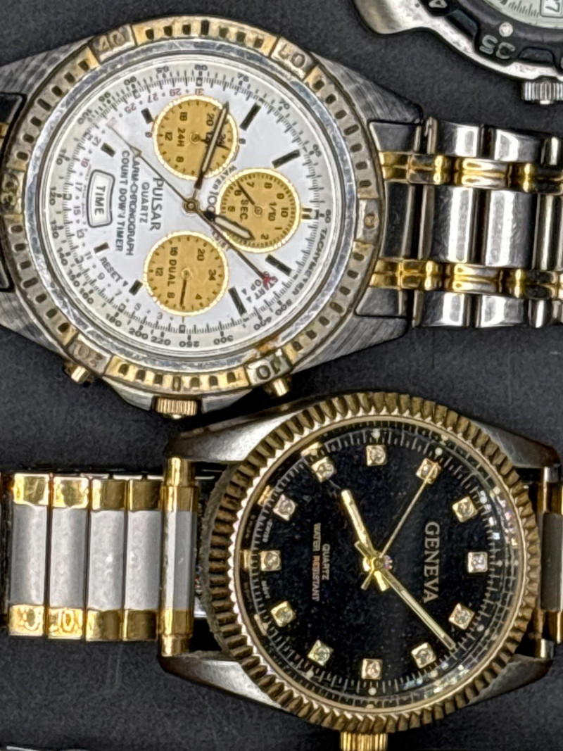 Notable brands visible include Seiko and Citizen, along with additional watches offering a range of looks—from dress watches to sport styles. This is a great opportunity for collectors, resellers, or anyone looking to refresh their watch rotation. Whether you're parting these out or keeping a few favorites, this lot offers strong variety and visual appeal. Mixed condition. Watches are untested for timekeeping accuracy and battery life. Some may need batteries, servicing, or adjustment. Cosmetic wear consistent with use may be present. Sold as-is. Please review photos carefully. Shipping available. We are happy to combine shipping on multiple items when possible.