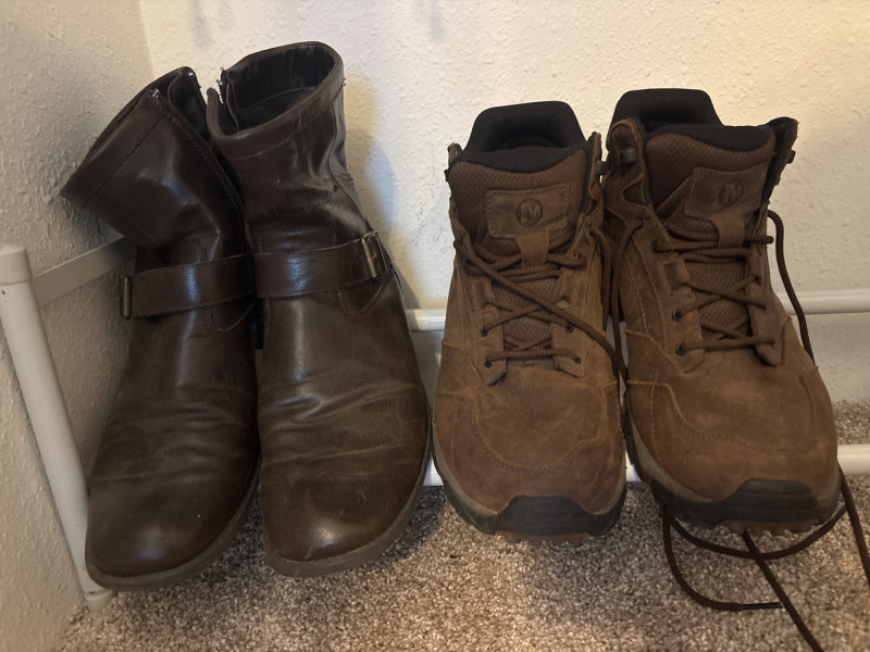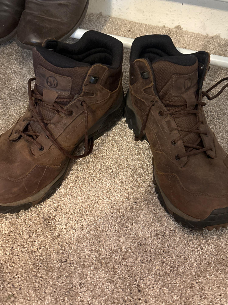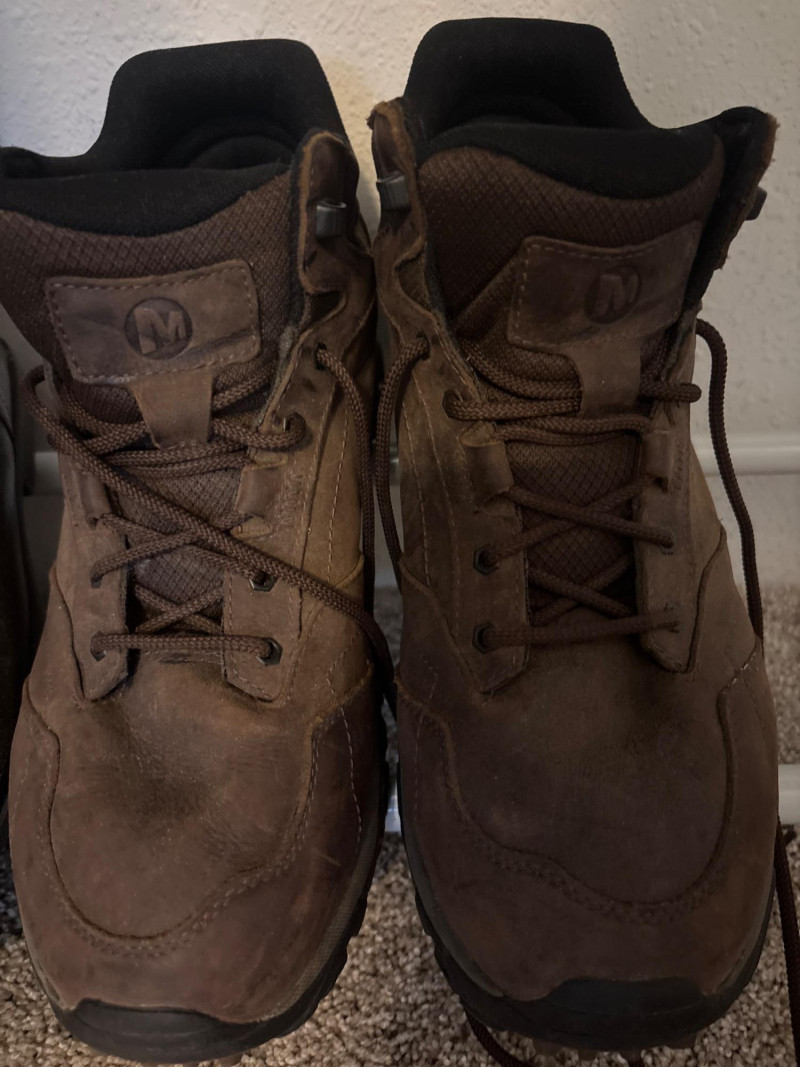 ✔️ Merrell hiking shoes (Men’s 10W) – known for durability, traction, and all-day comfort