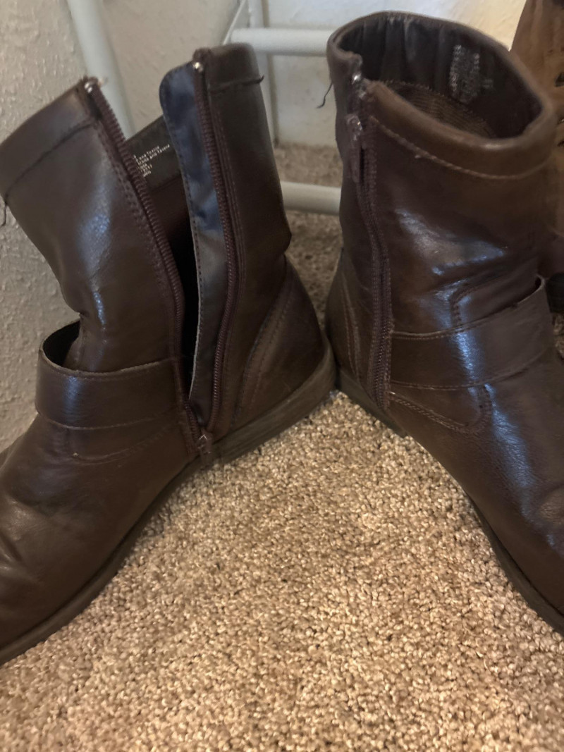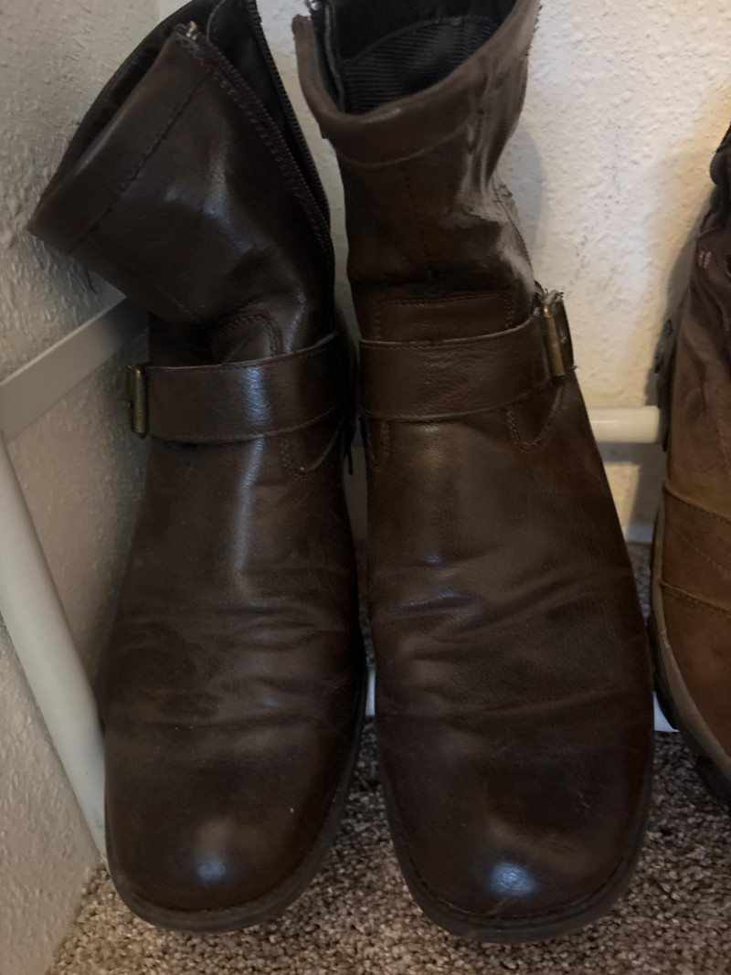 ✔️ Brown leather ankle boots (Men’s 8½ Medium) – classic design with side zipper and strap detail