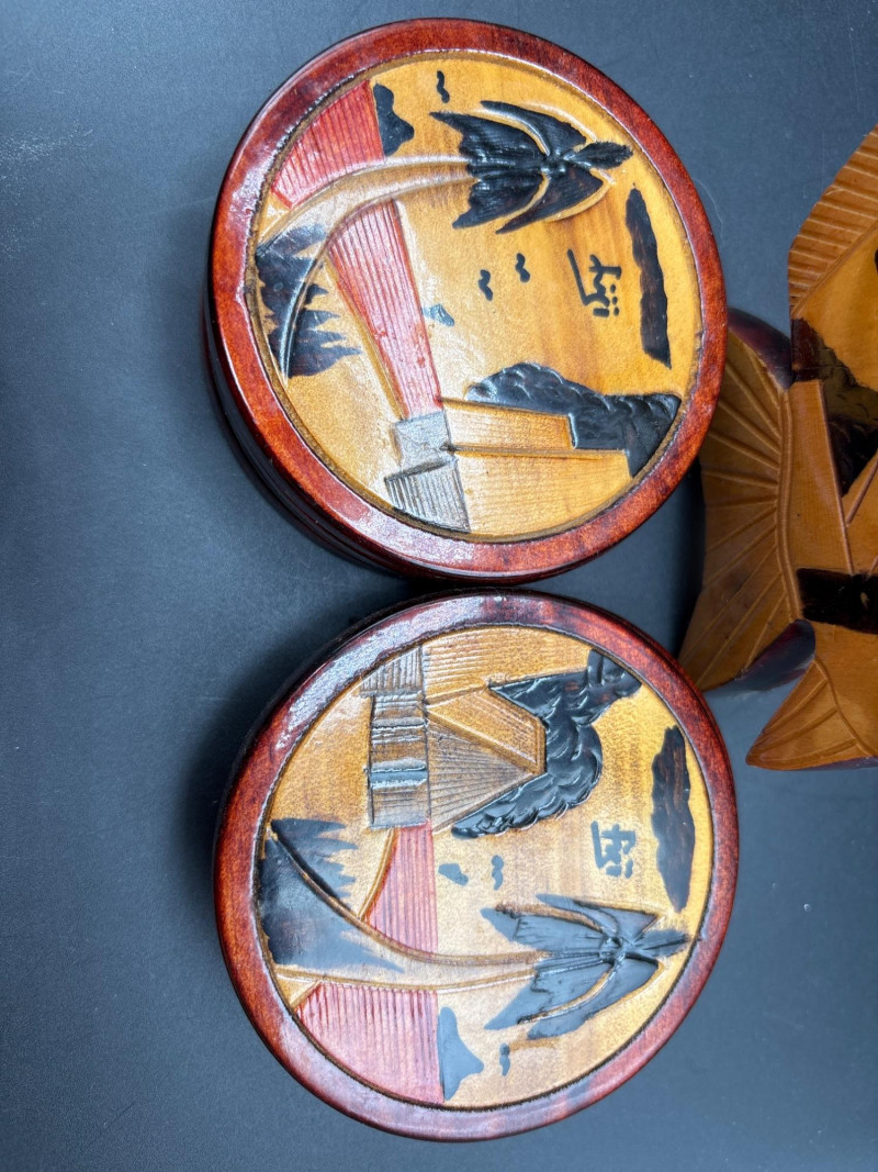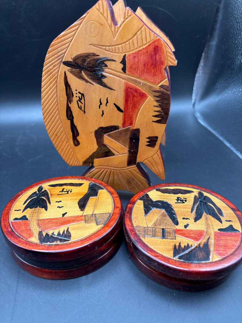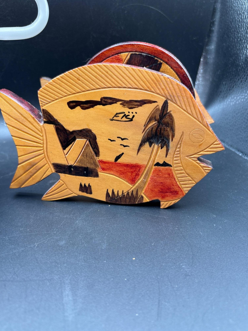✔️ Wooden fish-shaped coaster holder with coasters