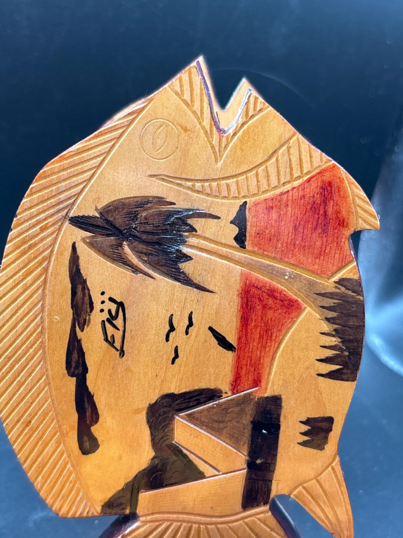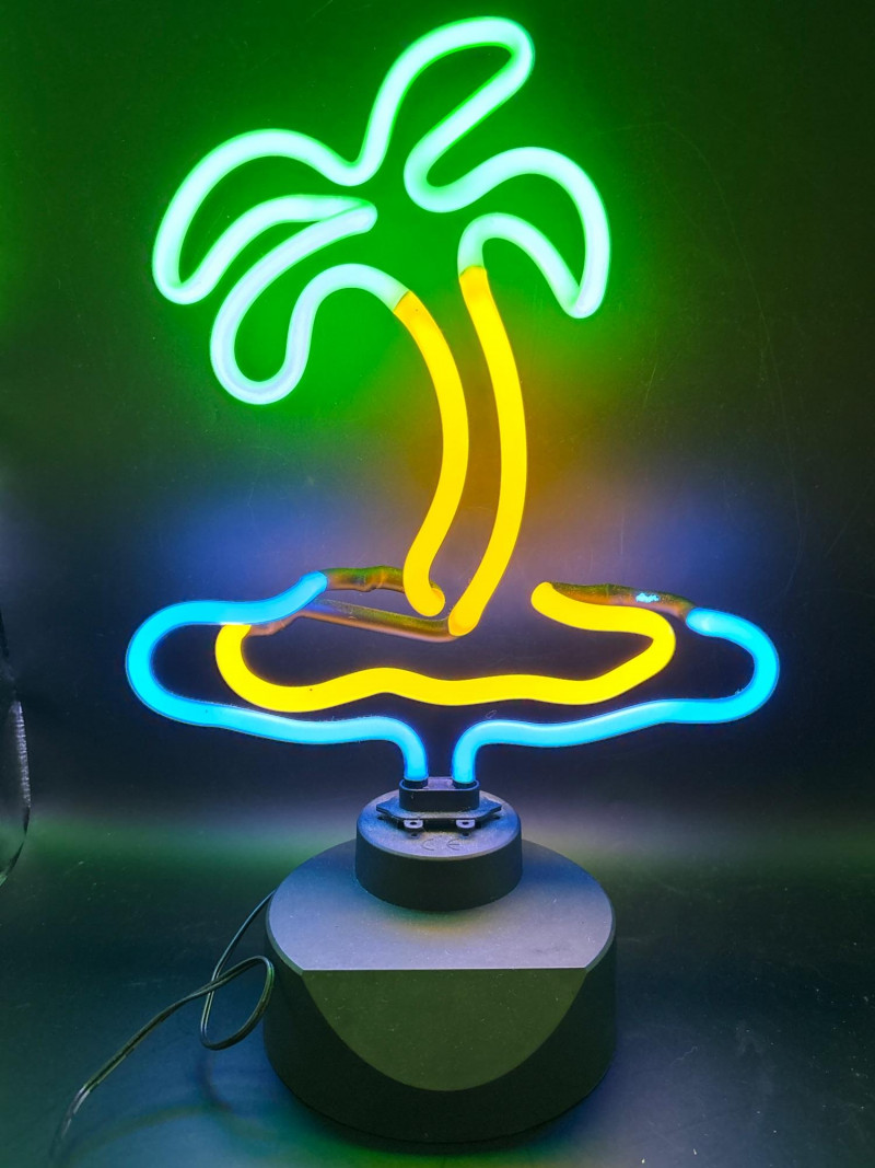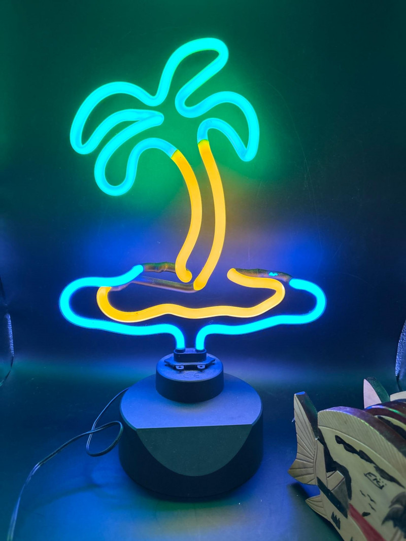 Bring a splash of tropical fun to your space with this colorful décor lot featuring a glowing palm tree light and a unique fish-shaped coaster holder. The neon-style palm tree light casts vibrant green, yellow, and blue hues—perfect for creating a relaxed, beachy atmosphere. Paired with a carved wooden fish coaster set, this lot blends playful lighting with functional décor. ✔️ Neon-style palm tree light on base. 14 inch tall. Perfect for adding personality to any space or creating a laid-back island vibe. Pre-owned condition. Light shows well when powered on. Light wear on coaster set consistent with use. Please review photos carefully—pictures are part of the description. Shipping available. Combined shipping offered when possible.