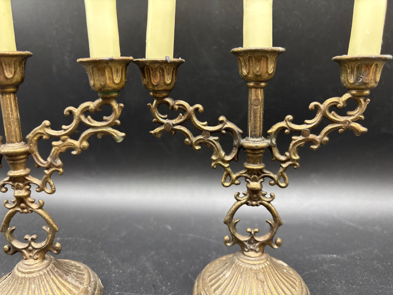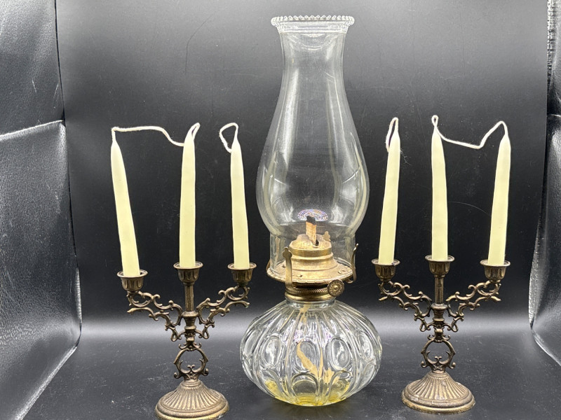 Lot # 116 - Vintage Oil Lamp & Brass Candelabras Romantic Old World Glow