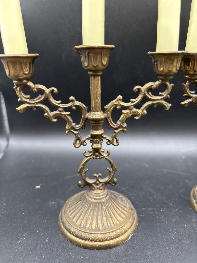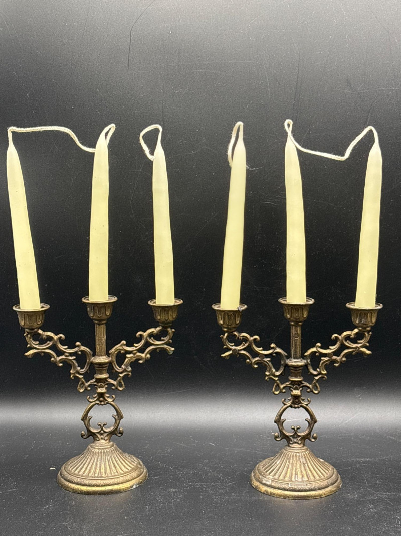 Set the mood with warm, timeless light and classic elegance. Create a warm, inviting atmosphere with this beautiful vintage lighting lot featuring a classic glass oil lamp paired with two ornate brass candelabras. This set brings instant old-world charm—perfect for cozy evenings, holiday tables, or adding character to any vintage-inspired space. The oil lamp features a clear glass font and chimney with a traditional burner, while the matching brass candelabras offer elegant curves and timeless design. Display them together for a striking centerpiece or use throughout your home for a layered, ambient glow. A wonderful set for collectors, decorators, or anyone who loves that soft, nostalgic lighting you just can’t replicate. Approximate Measurements (per tag): Good vintage condition. Shows age-appropriate wear and patina consistent with use. Lamp and candle holders present well. Untested. Please review photos for full condition details. Shipping available. We are happy to combine shipping on multiple items when possible.